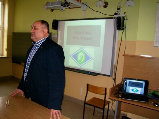 Podczas spotkania została przedstawiona prezentacja dotycząca cyberprzemocy w Internecie, która jest stosowana poprzez prześladowanie, zastraszanie, nękanie i wyśmiewanie innych osób na portalach społecznościowych, forach dyskusyjnych czy poprzez wiadomości prywatne. Oprócz informacji ogólnych uczniowie dowiedzieli się jak mogą walczyć z agresją w sieci oraz poznali konsekwencje działań niepożądanych. Prześladowanie przez Internet jest szczególnie groźne dlatego, że kompromitujące czy poniżające materiały są dostępne w krótkim czasie dla wielu osób i pozostają w sieci na zawsze, pomimo ich usunięcia.