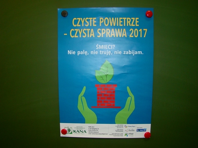 24 maja 2017r. uczniowie klas piątych uczestniczyli w projekcie realizowanym przez Katolickie Centrum Edukacji Młodzieży Kana w Nowym Sączu. Podczas zajęć prowadzonych przez wolontariuszki uczniowie dowiedzieli się co to jest niska emisja, smog, jak można przyczynić się do ochrony powietrza.