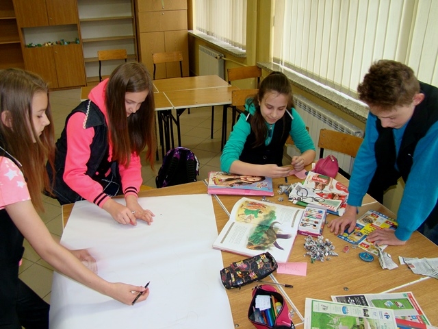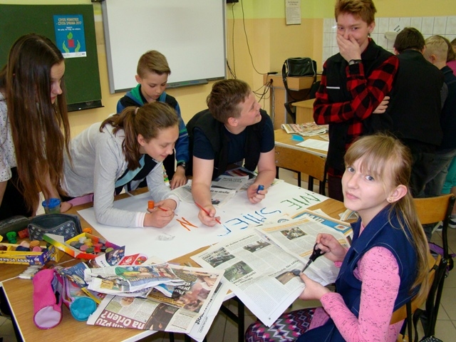 Na zakończenie zajęć przygotowali plakaty informujące o zanieczyszczeniach powietrza oraz sposobach jego ochrony, które zostały wywieszone na korytarzu szkolnym.