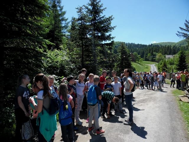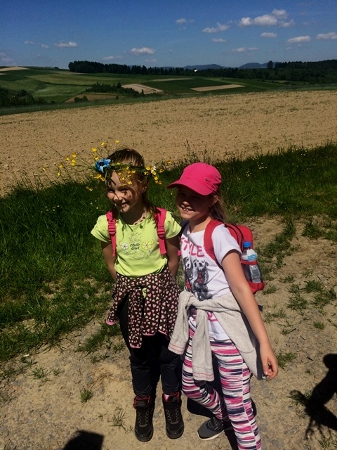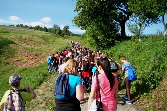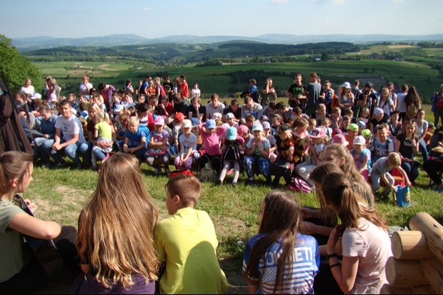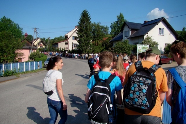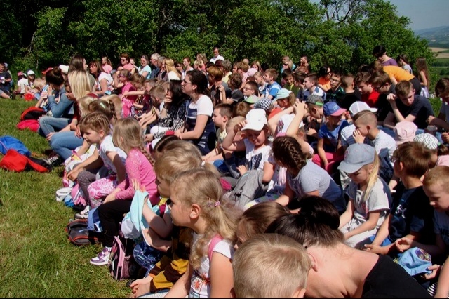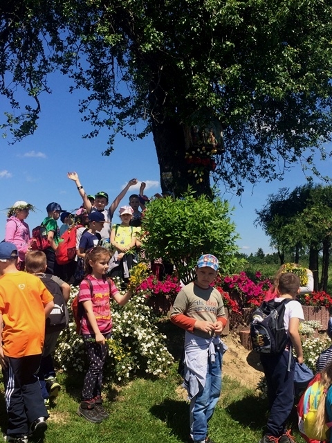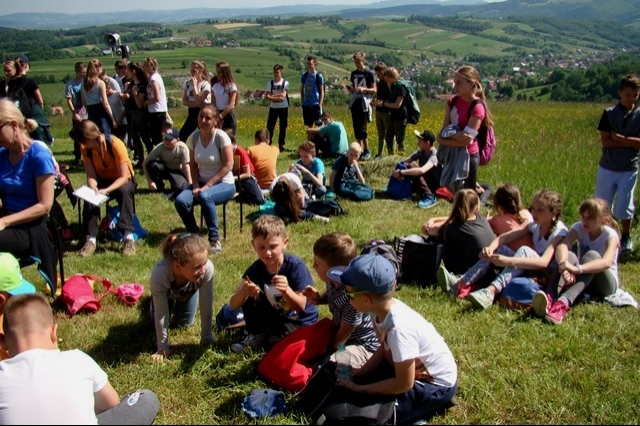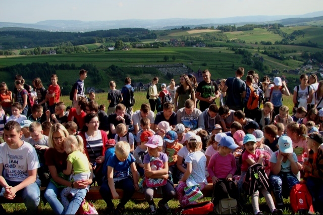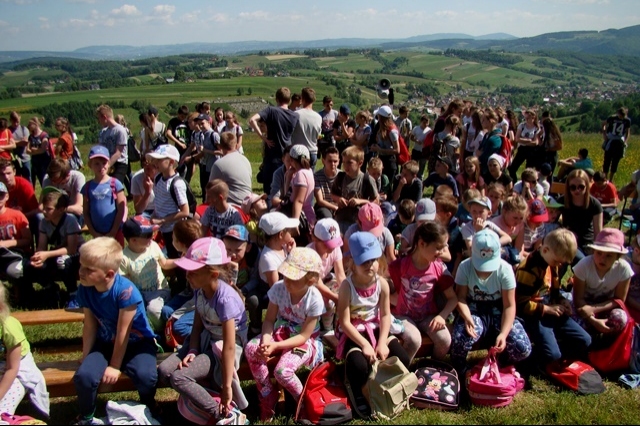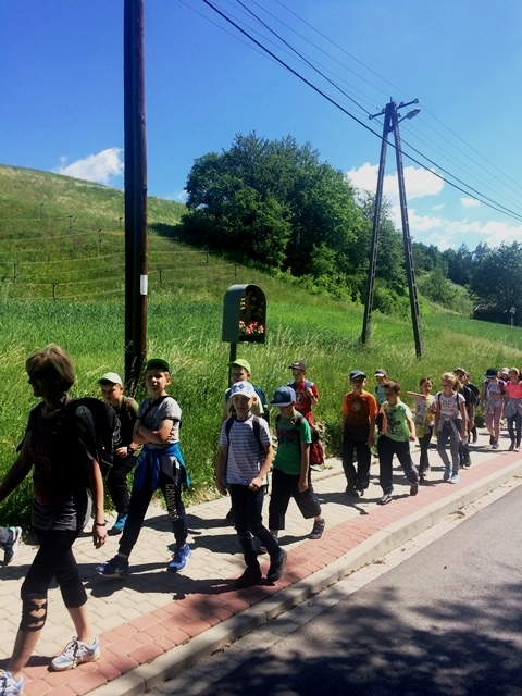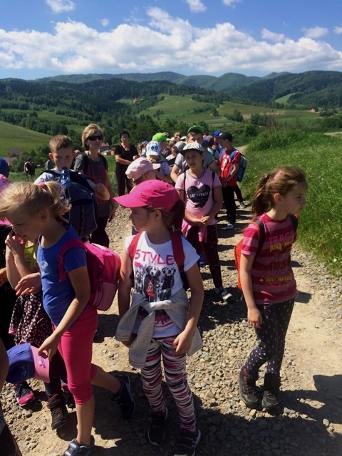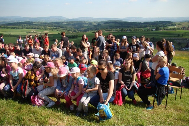 Potem ruszyliśmy na tradycyjny rajd wokół Przysietnicy, którego trasę wyznaczyli Małgorzata i Piotr Jarząbowie oraz pani Iwona Ogorzały. Tym razem motywem przewodnim była święta Kinga. Podczas wędrówki uczniowie wykonywali zadania związane z postacią naszej sądeckiej, choć pochodzącej z Węgier świętej. Pogoda i humory dopisywały. Na szczęście nie potwierdziły się sceptyczne opinie wskazujące potencjalne trudności związane z umiejscowieniem uroczystości, odprawieniem mszy w plenerze i przebiegiem rajdu takie jak: wędrówka po nieskoszonej, wysokiej trawie, w której mogą na dzieci czyhać wszelkie niebezpieczeństwa od kleszczy poczynając a na jadowitych wężach kończąc... Nie od dzisiaj znane jest jednak powiedzenie, że strach ma wielkie oczy, a doświadczenie uczy, że najbardziej obawiają się ci, którzy piękno swojej miejscowości podziwiają z perspektywy swojego domu lub czterech kółek samochodu…. Dzieci całe, zdrowe, trochę zmęczone, ale zapewne naładowane pozytywną energią wróciły do swoich domów.