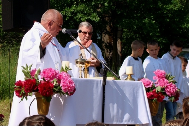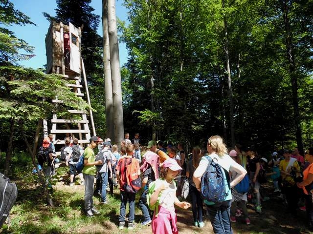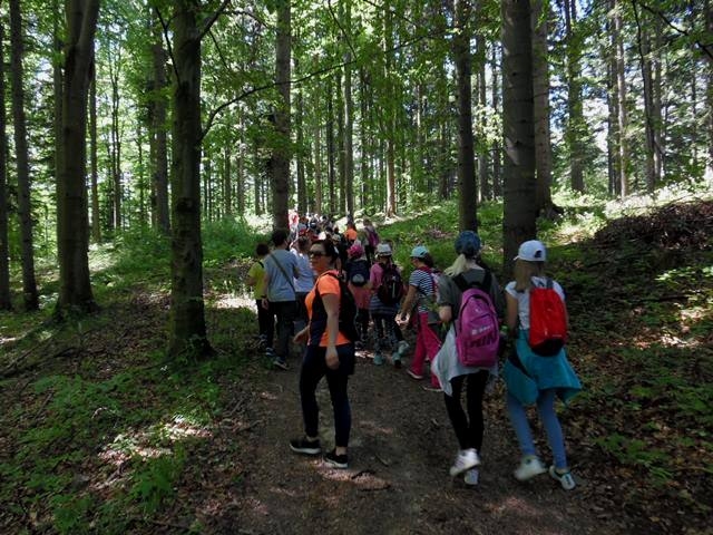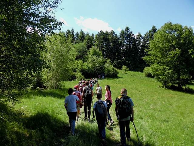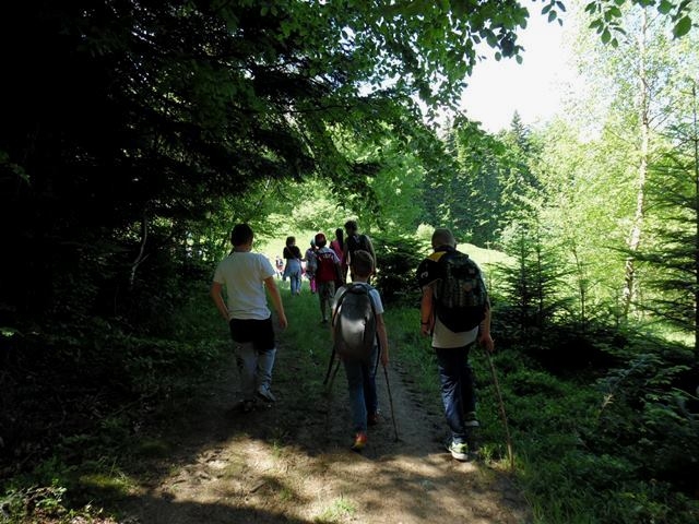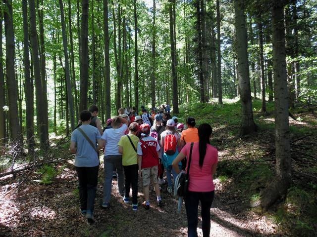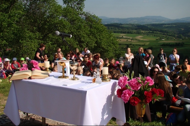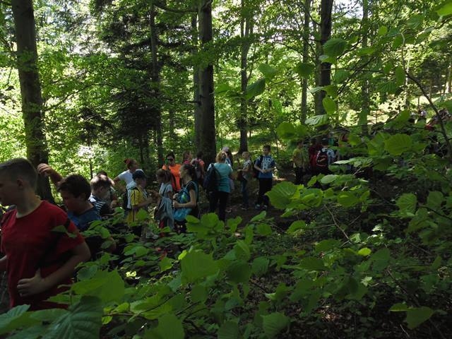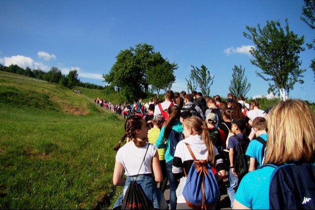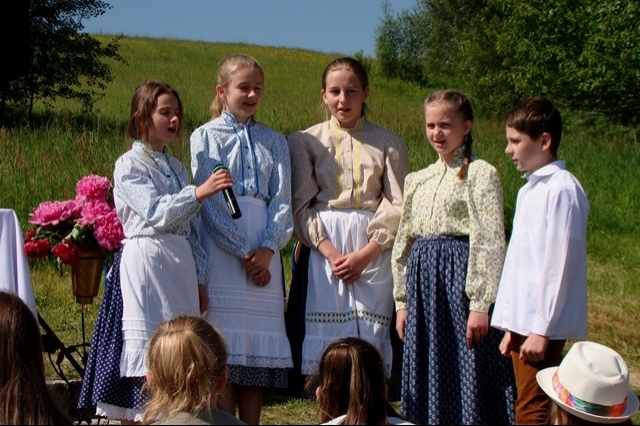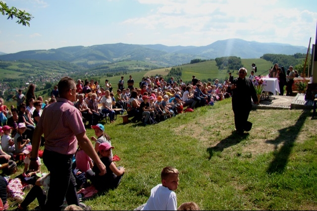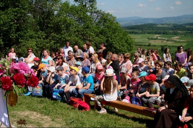 Potem ruszyliśmy na tradycyjny rajd wokół Przysietnicy, którego trasę wyznaczyli Małgorzata i Piotr Jarząbowie oraz pani Iwona Ogorzały. Tym razem motywem przewodnim była święta Kinga. Podczas wędrówki uczniowie wykonywali zadania związane z postacią naszej sądeckiej, choć pochodzącej z Węgier świętej. Pogoda i humory dopisywały. Na szczęście nie potwierdziły się sceptyczne opinie wskazujące potencjalne trudności związane z umiejscowieniem uroczystości, odprawieniem mszy w plenerze i przebiegiem rajdu takie jak: wędrówka po nieskoszonej, wysokiej trawie, w której mogą na dzieci czyhać wszelkie niebezpieczeństwa od kleszczy poczynając a na jadowitych wężach kończąc... Nie od dzisiaj znane jest jednak powiedzenie, że strach ma wielkie oczy, a doświadczenie uczy, że najbardziej obawiają się ci, którzy piękno swojej miejscowości podziwiają z perspektywy swojego domu lub czterech kółek samochodu…. Dzieci całe, zdrowe, trochę zmęczone, ale zapewne naładowane pozytywną energią wróciły do swoich domów.
