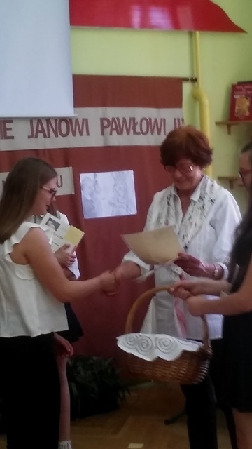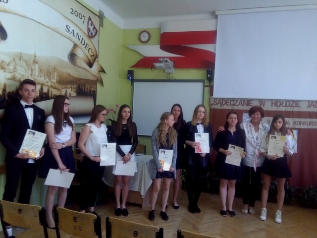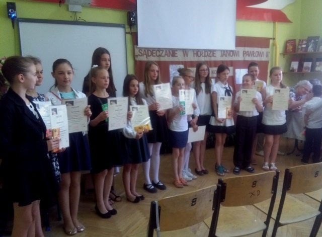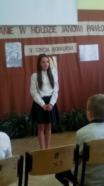 Uczennice zaprezentowały utwory poetyckie św. Jana Pawła II. Zmierzyły się z trudnym zadaniem - zinterpretowaniem niełatwej, bardzo wymownej i głębokiej w treści poezji. Wykazały się przy tym dużą dojrzałością, a jednocześnie wrażliwością, roztaczając wokół siebie aurę świadomego odbiorcy twórczości Karola Wojtyły i tworząc tym samym niezapomniane wrażenia artystyczne. Zostało to dostrzeżone i docenione przez jury konkursu, które zdecydowało o wyróżnieniu Julii Dudek za recytację utworu „Siostra” oraz przyznaniu II miejsca w konkursie Joannie Stawiarskiej za utwór „Zdumienie” i I miejsca Katarzynie Opoce za recytację utworu „Rozmowa ojca z synem w krainie Moria”. Oficjalne wręczenie dyplomów i nagród nastąpi 9 czerwca w Gimnazjum w Starym Sączu podczas uroczystości związanych z obchodami święta szkoły.