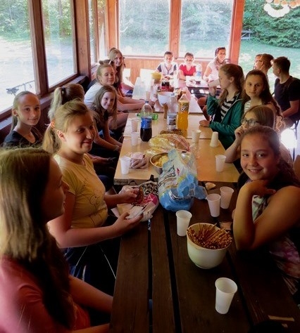 Piękna pogoda dopisała więc spokojnie każdy na polanie znalazł dla siebie zajęcie. Była wspólna zabawa, tańce, gra w piłkę, śpiewanie piosenek i pieczenie kiełbasek. Ten czas to też dobra okazja na pożegnanie z uczniami klasy 3 Gimnazjum, którzy kończą szkołę a aktywnie działali w kołach.