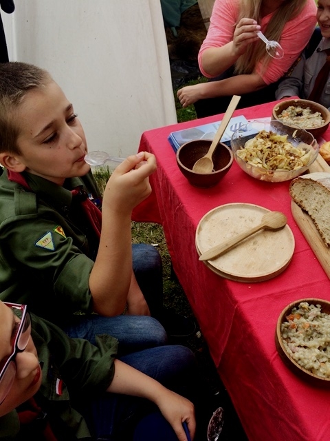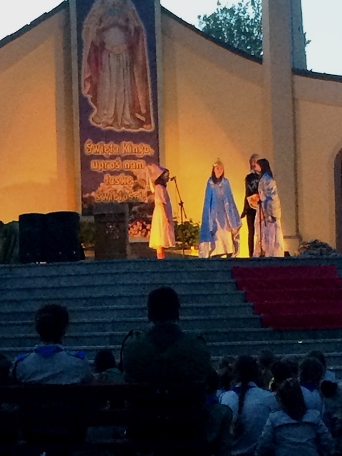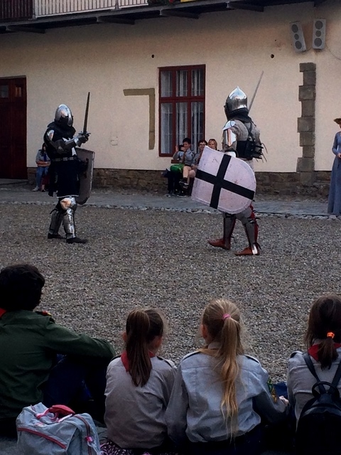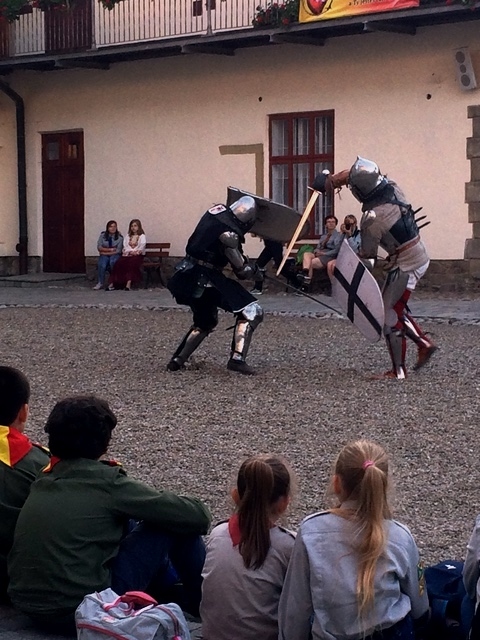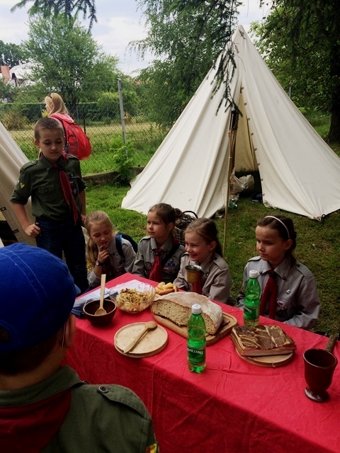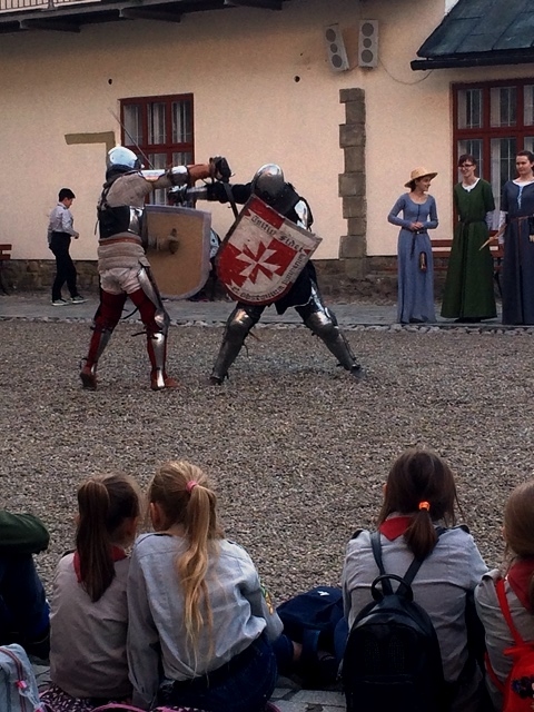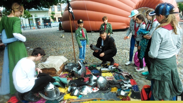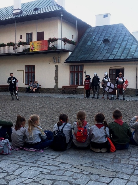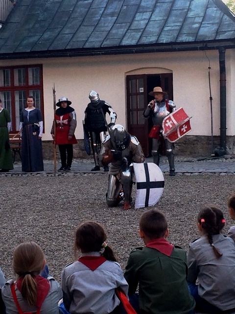 W pierwszym dniu, po zagospodarowaniu się i ustawieniu obozowiska przy Szkole Podstawowej nr 1 im. ks. prof. Józefa Tischnera w Starym Sączu, spotkaliśmy się wszyscy na dziedzińcu Klasztoru Klarysek, gdzie mogliśmy podziwiać pojedynki rycerzy ze Stowarzyszenia Sądeckiego Rycerstwa Zakonu Księżnej Kingi ze Starego Sącza. Było to dla wszystkich ogromne przeżycie. Następnie uczniowie ze Szkoły Podstawowej nr 1 zaprezentowali przedstawienie o życiu św. Kingi.