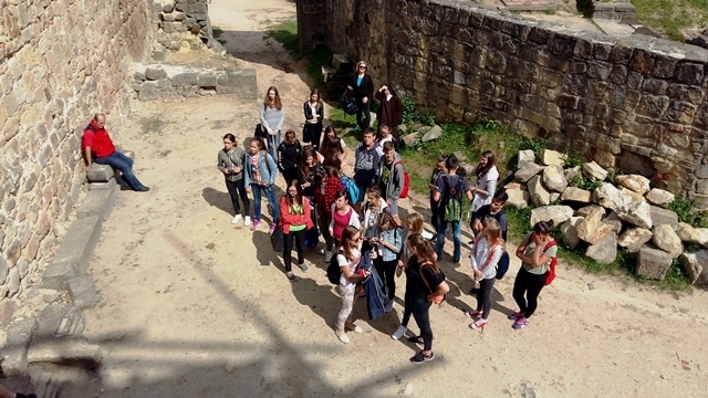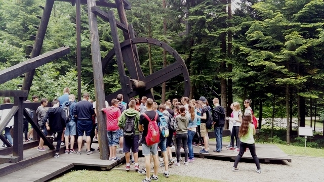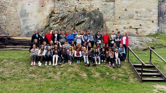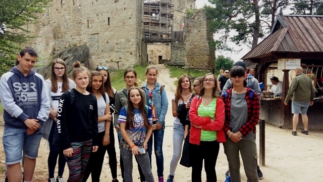 Około godziny 15 dotarliśmy do Ruin Zamku w Odrzykoniu, należącym kiedyś do Aleksandra Fredry. Z murów zamku, które było pierwowzorem akcji „Zemsty” podziwialiśmy rozległą i malowniczą panoramę. Wewnątrz zwiedzaliśmy skromne zamkowe komnaty i kaplicę, w której msze odprawiał św. Jan z Dukli. Mogliśmy wejść również do sali tortur, gdzie chętni mogli „przymierzyć” niektóre eksponaty.