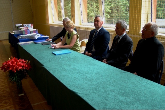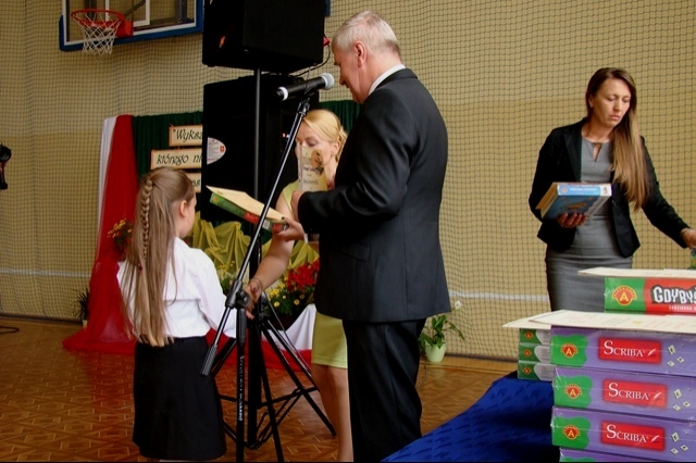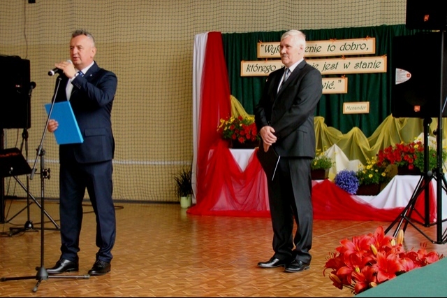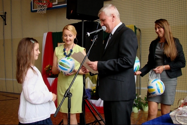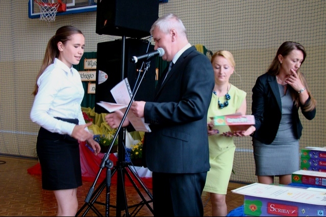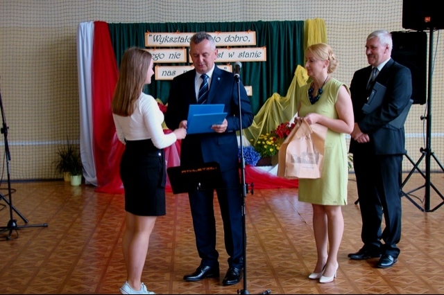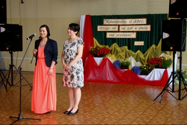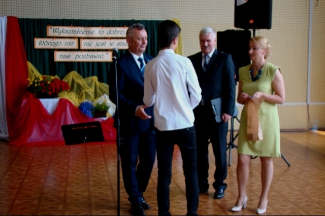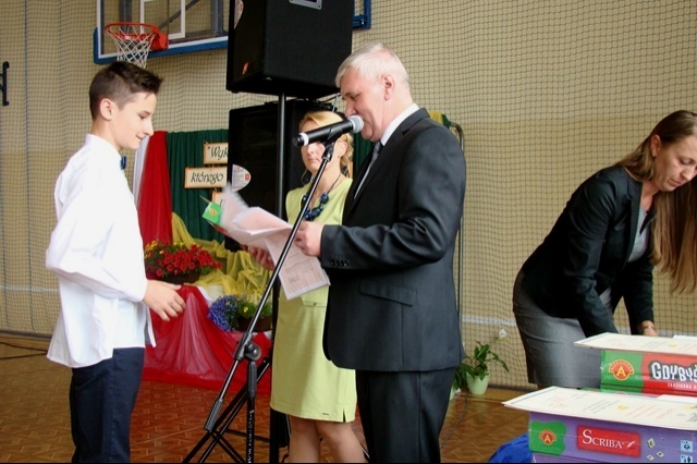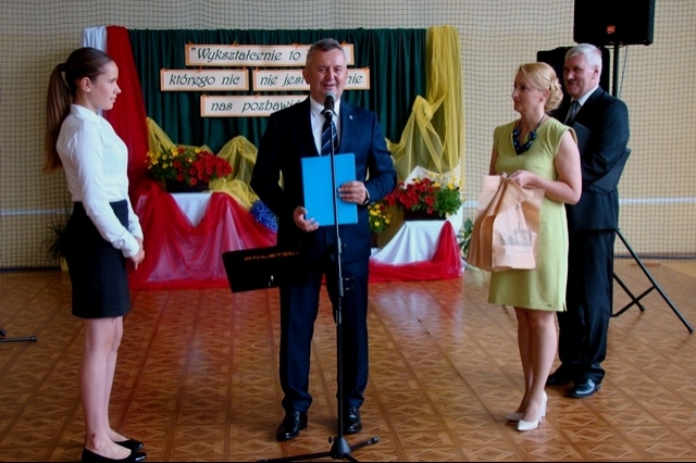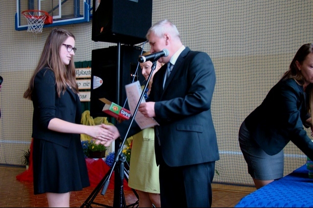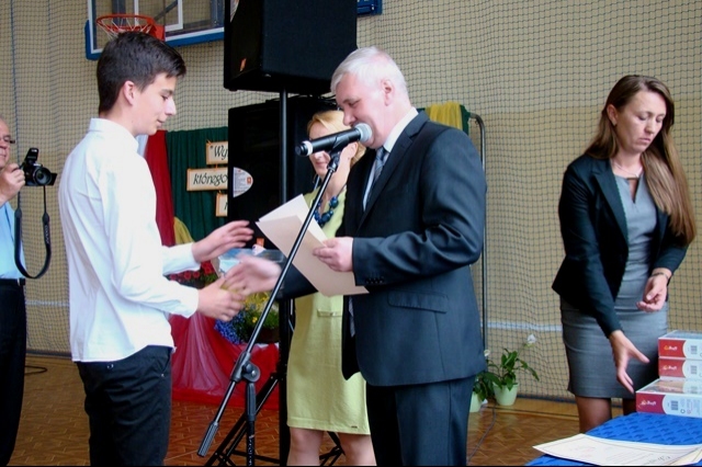 Po tych wzruszających chwilach nastąpił oczekiwany czas rozdania świadectw z wyróżnieniem dla najlepszych uczniów całej szkoły oraz nagród za szczególne osiągnięcia i 100% frekwencję. Przedtem jednak pan dyrektor szkoły Aleksander Łukasik, w swoim przemówieniu przywitał przybyłych na uroczystość Gości: wiceburmistrza Starego Sącza pana Kazimierza Gizickiego, księdza prałata Jana Wąchałę oraz sołtysa i Radnego Rady Miejskiej pana Kazimierza Ptaśnika. Podziękował wszystkim za cały rok pracy oraz pogratulował wysokich wyników na egzaminie gimnazjalnym. Następnie głos zabrał pan Burmistrz Gizicki, zwracając się do absolwentów i podkreślając, że z wielkim sentymentem będą wracać wspomnieniami do lat spędzonych w tej szkole. Wręczył również trzy nagrody ufundowane przez Burmistrza Starego Sącza dla uczniów, którzy uzyskali wysokie wyniki w konkursach tematycznych.