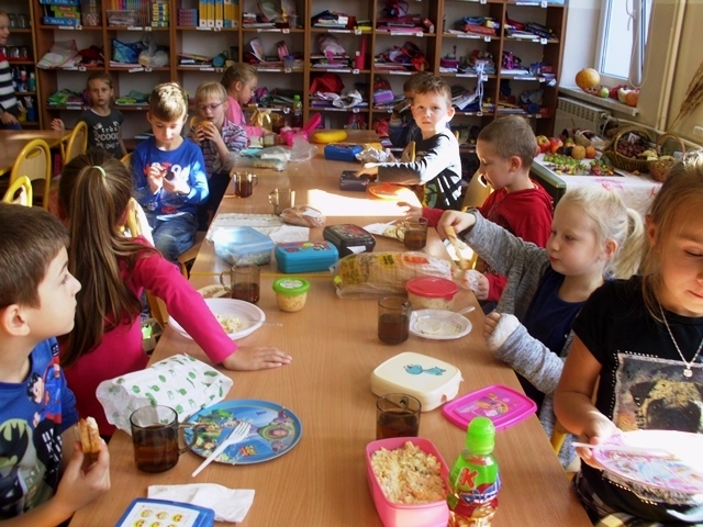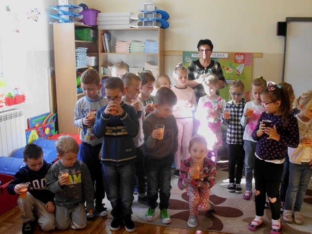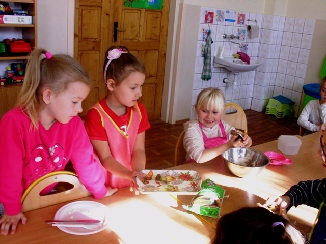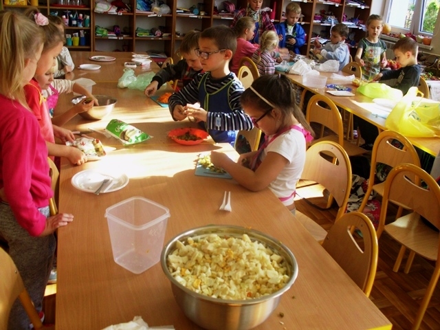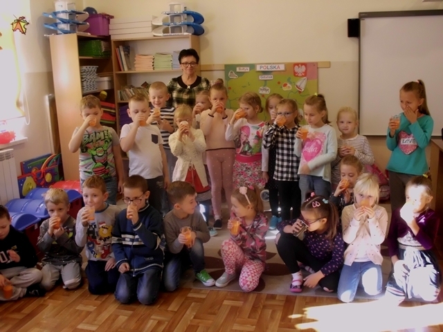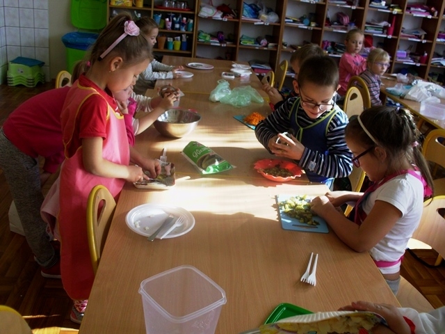 Takie było hasło cyklu zajęć w oddziale przedszkolnym 0-2, poświęconych owocom i warzywom. Dzieci najpierw rozpoznawały warzywa i owoce – krajowe i egzotyczne, uczyły się nowych nazw. Rozpoznawały po kształcie, kolorze, smaku. Wybrzmiewały nazwy dzieląc je na sylaby, głoski, poznawały zabawę „Sałatka jarzynowa”, dawały odpowiedzi na pytania dlaczego jemy owoce i warzywa, jakie potrawy z nich przygotowujemy, aż wreszcie same przyrządzały sałatkę jarzynową, którą zjadły na drugie śniadanie. W następny dzień robiły sok jabłkowo - marchewkowy. Przy tej okazji uczyły się obsługi sokowirówki z zachowaniem zasad BHP.