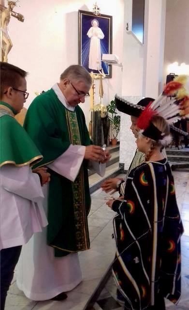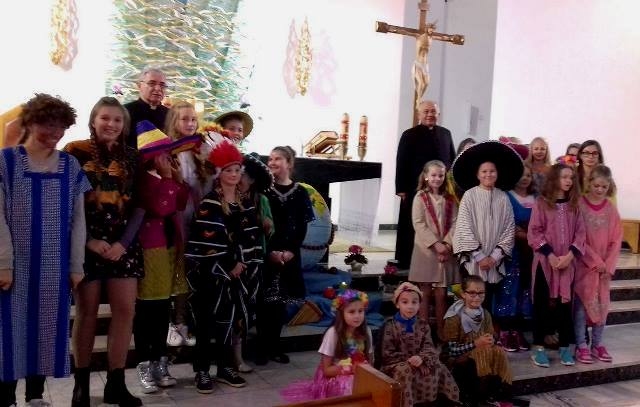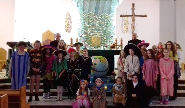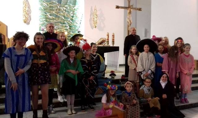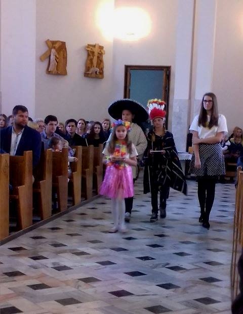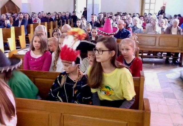 Uczniowie naszej szkoły wraz z nauczycielami aktywnie wspierają dzieła misyjne Kościoła organizując okolicznościowe zbiórki i stale podejmując dzieło Adopcji Serca, a także biorąc udział w Kolędzie Misyjnej. W tym roku dnia 22 października we wspomnienie Wielkiego Misjonarza Świata - Świętego Jana Pawła II przypadła Niedziela Misyjna pod hasłem „Idźcie i głoście”, która zarazem rozpoczęła Tydzień Misyjny. Misję ma podejmować każdy uczeń Chrystusa osobno, ale też wezwane są do tego wspólnoty. Przyjąć Chrystusa to być gotowym, by być misjonarzem. Wspierać misje możemy przede wszystkim naszą modlitwą, dlatego uczestniczyliśmy w tym dniu wspólnie we Mszy świętej. Przebrani w stroje osób z różnych kontynentów przygotowaliśmy liturgię, dając tym samym wyraz naszej duchowej łączności z misjami. Nie musimy przecież wyjeżdżać do innych krajów. Misjonarzami powinniśmy być wśród najbliższych, w domu, w szkole i w pracy. Misje to nie akcja charytatywna, ale zadanie każdego z nas. Zatem „idźmy i głośmy”!
