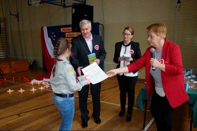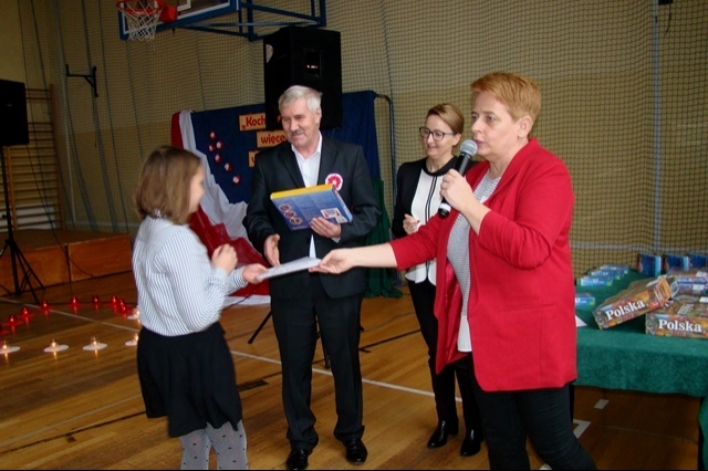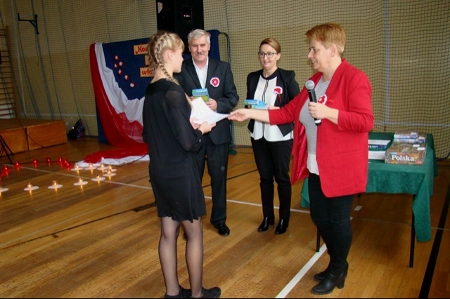 Wszyscy biorący udział w konkursie mogli poczuć się usatysfakcjonowani, ponieważ otrzymali piękne dyplomy oraz nagrody rzeczowe nawiązujące tematycznie do wiedzy o Polsce, które wręczyli p. Aleksander Łukasik – dyrektor szkoły oraz p. Anna Golonka – wicedyrektor.
