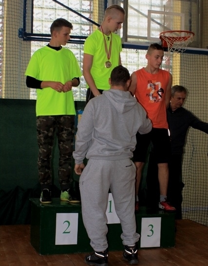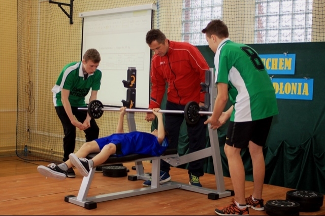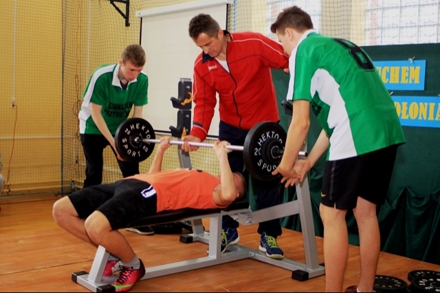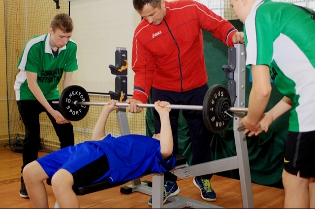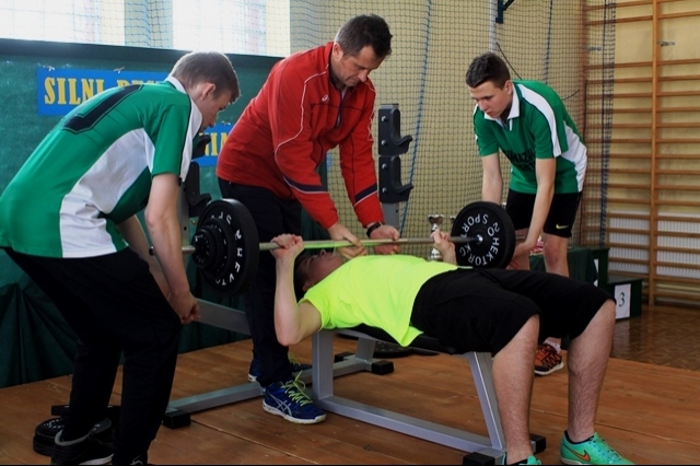 Finał zawodów uświetnił swoją obecnością Pan Kazimierz Ptaśnik – Radny Rady Miejskiej Miasta Starego Sącza i Sołtys Przysietnicy oraz nasz absolwent Kacper Sopata, który w roku 2011 pobił rekord zawodów wyciskając ciężar 115 kg! Obecnie Kacper jest Mistrzem Polski Strongman w kategorii 80 kg. Tytuł zdobył podnosząc w martwym ciągu 285 kg. Wszyscy mieli okazję widzieć pokaz siły naszego gościa, który prezentował zebranym zawodnikom podnoszenie 240 kg. Młodzi zawodnicy mieli okazję zapytać naszego Strongmana o interesujące ich zagadnienia dotyczące treningu.