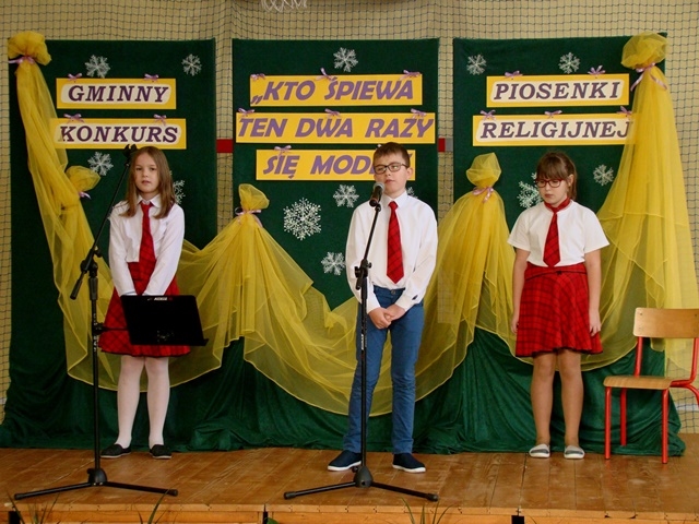 W dniu 11 grudnia 2017r. w naszej szkole po raz drugi odbył się Gminny Konkurs Piosenki Religijnej. W Konkursie brało udział dwudziestu pięciu uczniów ze szkół podstawowych wraz z klasami gimnazjalnymi: ze Starego Sącza, z Barcic, Gołkowic, Skrudziny, Gabonia, Moszczenicy i Przysietnicy.