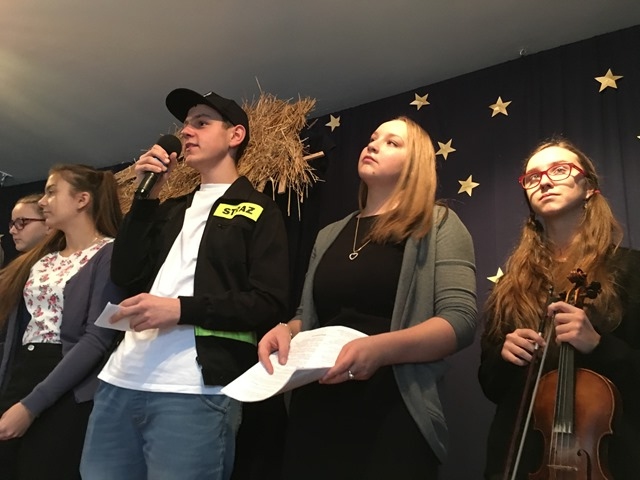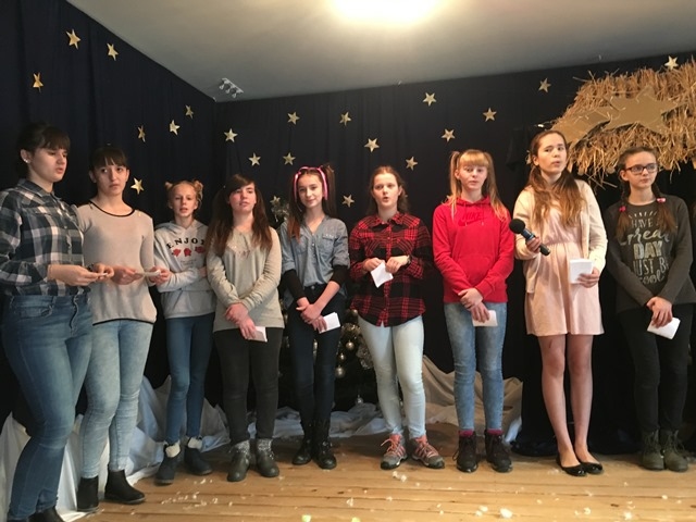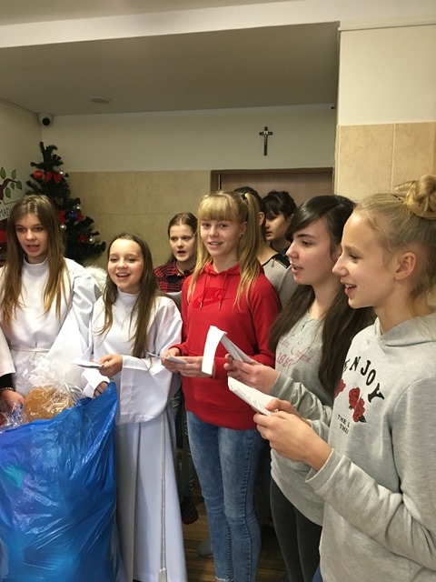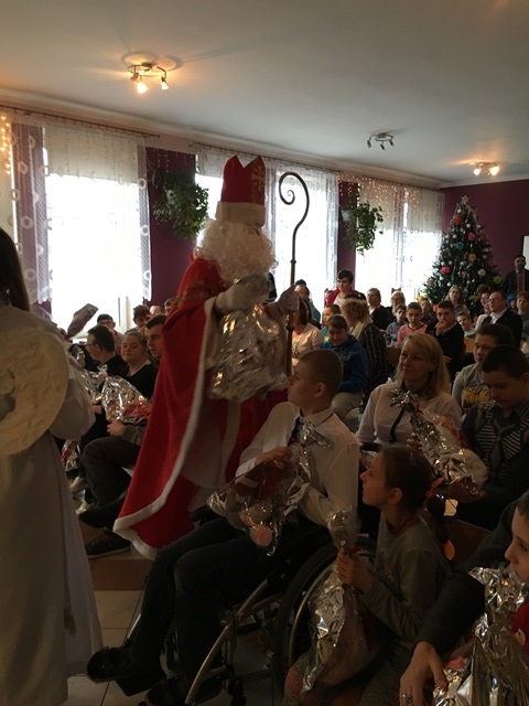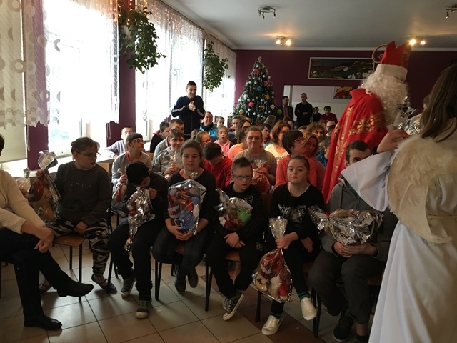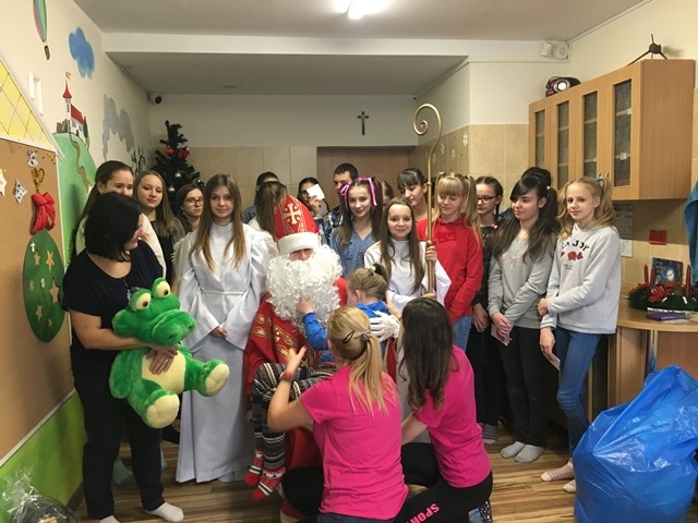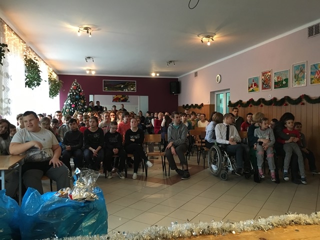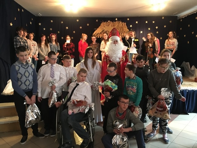 Dnia 20.12.2017 roku Wolontariat Szkolny wynajętym busem udał się na spotkanie świąteczno-mikołajowe do SOSW w Nowym Sączu. Wolontariusze pod opieką p. Magdaleny Cieślewicz przygotowali krótki spektakl oraz 75 paczek dla niepełnosprawnych uczniów.