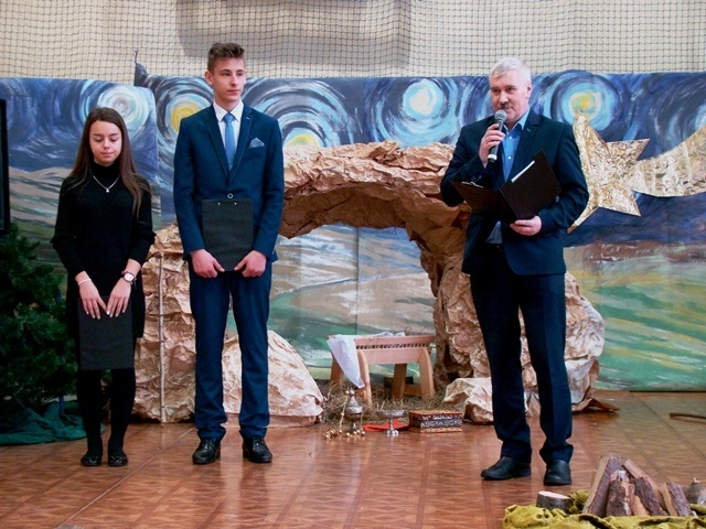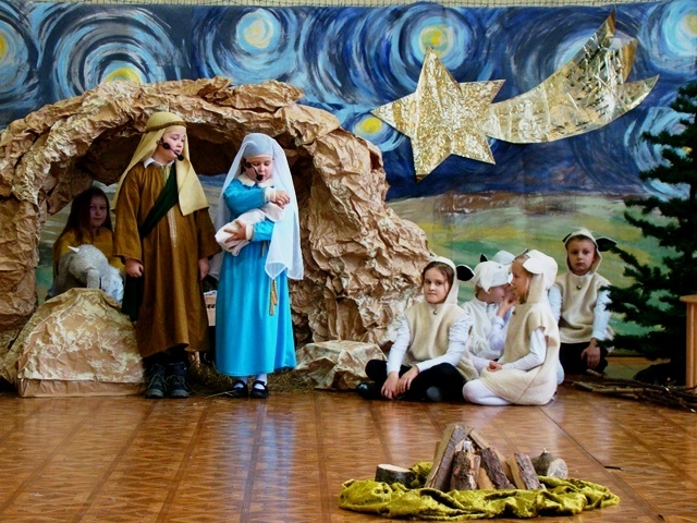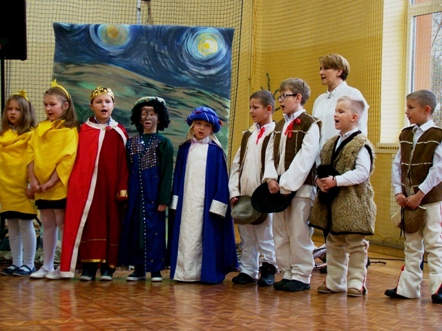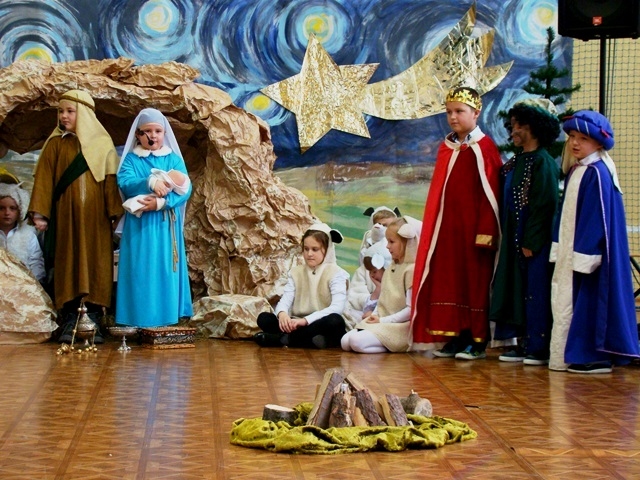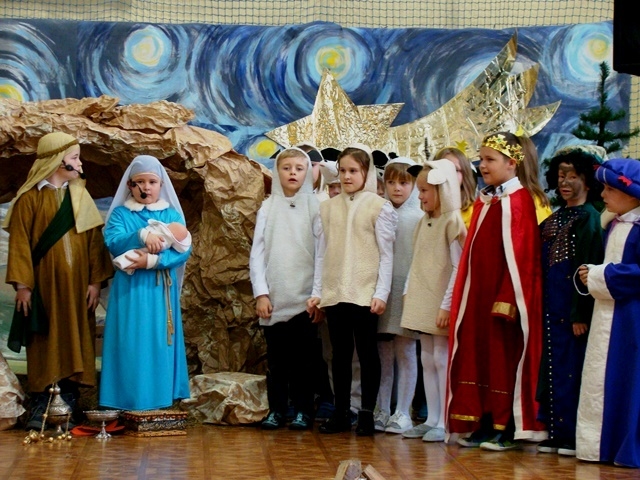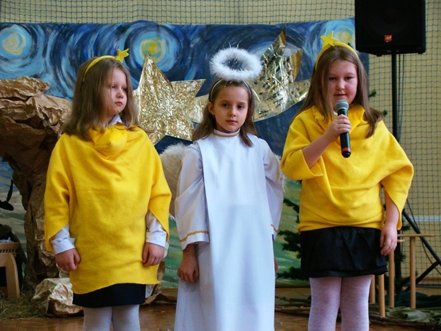 Święta Bożego Narodzenia są dla nas wszystkich szczególnym przeżyciem. Najbardziej jednak cieszy nas sam okres przygotowań i oczekiwania, który rozpoczyna się już na wiele dni przed Wigilią. A któż bardziej cieszy się z nadchodzących Świąt jak nie dzieci? Aby w tym roku uczniowie mogli jeszcze bardziej przeżyć ten czas i cieszyć się świąteczną atmosferą w szkole, wdrożony został po raz kolejny projekt edukacyjny „Tajemnica Bożego Narodzenia”. Tym razem w przygotowaniu projektu głównie udział wzięli uczniowie klas I – II naszej szkoły poprzez prezentację przedstawienia bożonarodzeniowego pt. „Ach, co za noc” pod kierunkiem s. Anny Śliwy we współpracy z p. Barbarą Stelmach, p. Aliną Citak i p. Krzysztofem Smydą. Pozostali uczniowie przygotowali wraz z wychowawcami wigilie klasowe oraz wzięli udział we wspólnym kolędowaniu.