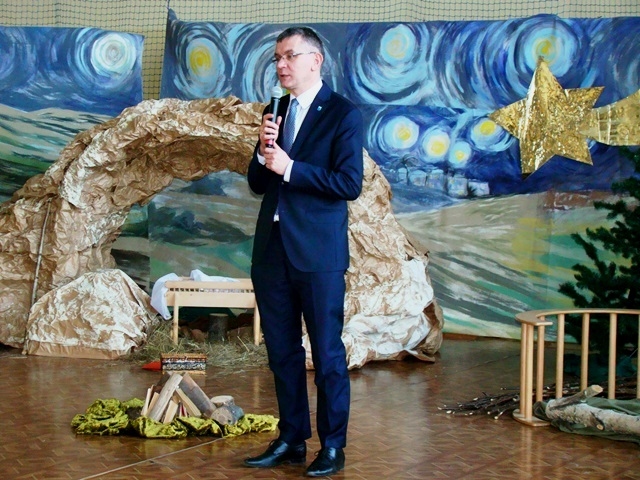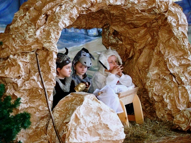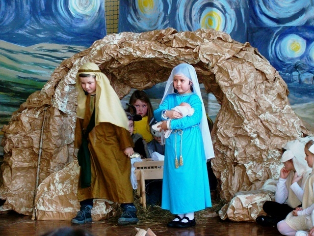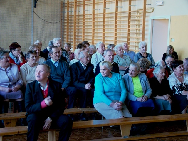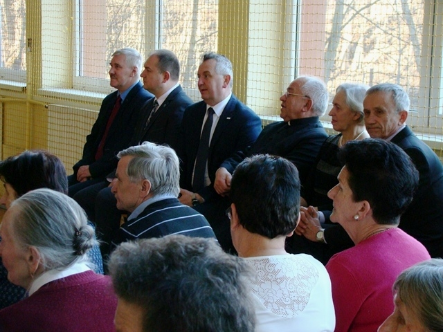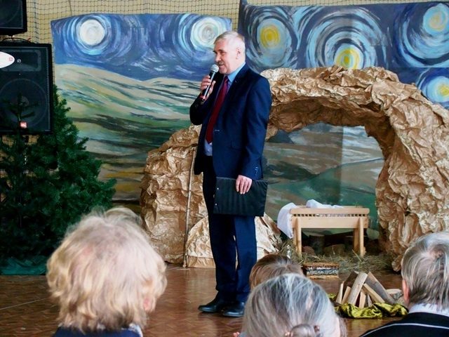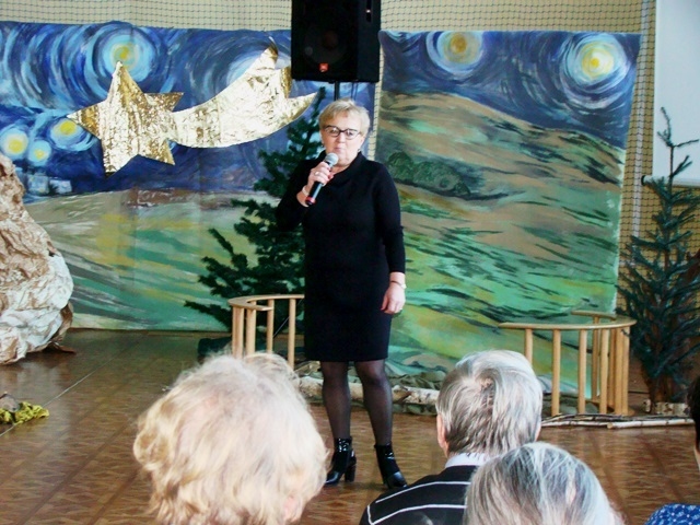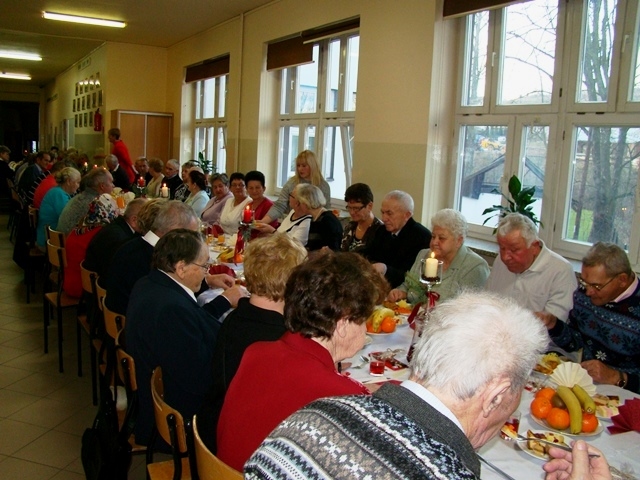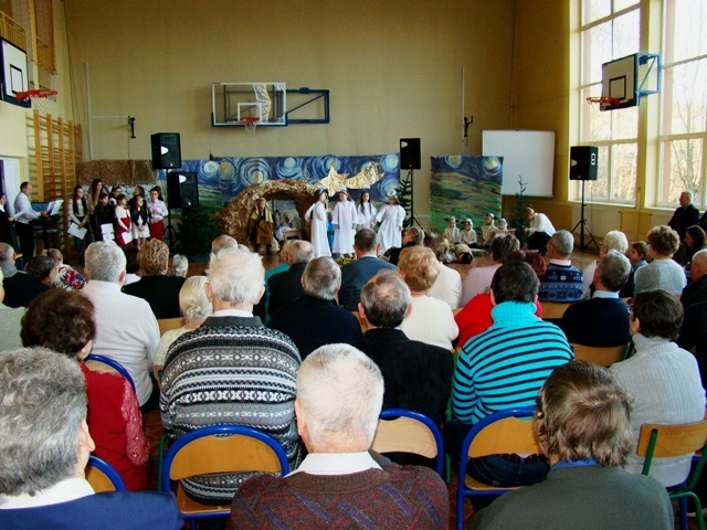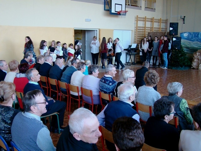 Wydarzenie rozpoczęły jasełka zatytułowane „Ach, co za noc” przygotowane przez uczniów klas I i II szkoły podstawowej pod kierunkiem siostry Anny Śliwy we współpracy z p. Barbarą Stelmach, p. Aliną Citak i p. Krzysztofem Smydą. Po przedstawieniu życzenia wszystkim zgromadzonym złożyli Dyrektor Szkoły Aleksander Łukasik, Burmistrz Jacek Lelek oraz pani Jadwiga Grądalska. Następnie odbyło się wspólne łamanie opłatkiem i poczęstunek oraz śpiewanie kolęd, któremu towarzyszyły zespoły wokalne „Amadeo” i „Słoneczka” oraz dziewczyny akompaniujące na skrzypcach, które zachwyciły słuchaczy swoją grą. Nie zabrakło także wspólnego śpiewania kolęd oraz pieśni regionalnych, do których przygrywał na akordeonie pan Krzysztof Smyda. Spotkanie upłynęło w serdecznej atmosferze, a Seniorzy kolejny raz mogli poczuć się kochani i ważni.