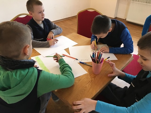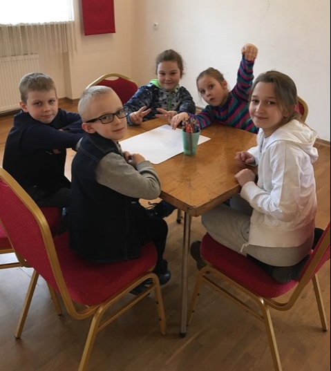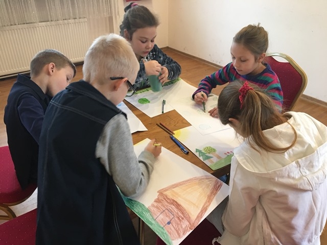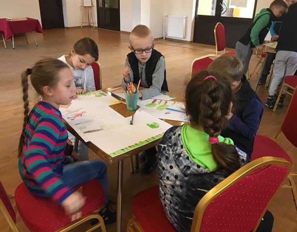 Podczas warsztatów dzieci poznały historię teatru Kamishibai, słuchały bajki „Szukając Marudka” oraz co najważniejsze tworzyły własne opowieści połączone z twórczymi pracami plastycznymi.