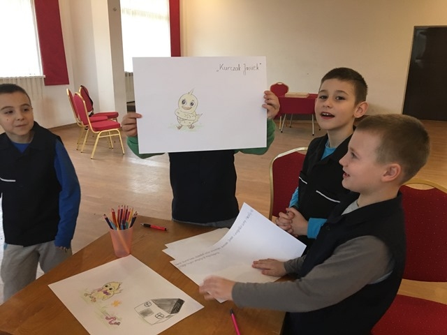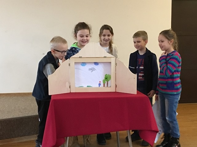 Finałem warsztatu było oczywiście przedstawienie przez grupy swoich własnych, zilustrowanych opowieści, mieszczących się w „małej, drewnianej skrzyneczce”. Spotkanie z teatrem Kamishibai z pewnością pozwoliło rozbudzić dziecięcą wyobraźnię, dało możliwość współpracy, podczas podejmowania decyzji, a także pokonania pewnych nieśmiałości.