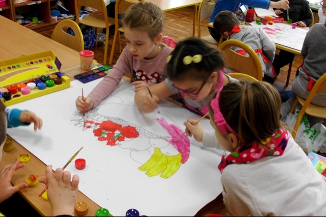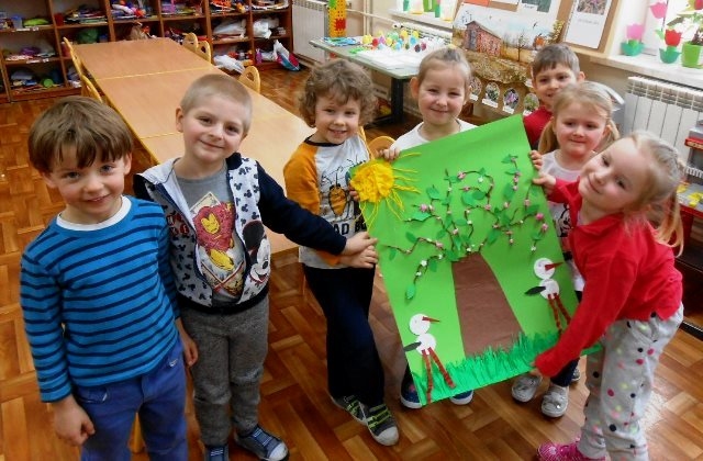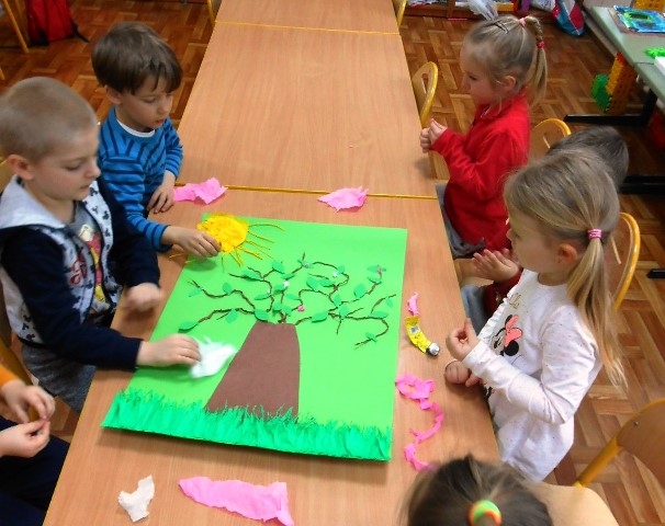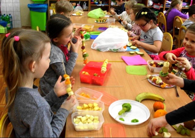 21 marca na przedszkolaki z grupy 0-1 i 0-2 czekało wiele atrakcji. Z okazji Pierwszego Dnia Wiosny dzieci wykonywały ciekawe prace plastyczne o tematyce wiosennej oraz zdrowotnej, co pozwoliło na utrwalenie zalet spożywania owoców i warzyw. Ponadto podczas śniadania wszyscy mieli okazję samodzielnie wykonać przepyszne owocowe szaszłyki, które zawierały mnóstwo witamin.