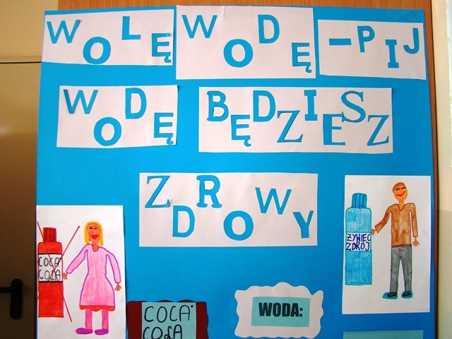 W naszej szkole został przygotowany kącik poświęcony wodzie. Każdy uczeń mógł dowiedzieć się ciekawych informacji na jej temat, odpowiedzieć na pytania oraz spróbować rozmaitych wód mineralnych i leczniczych. Kącik wzbudził duże zainteresowanie i odwiedziło go bardzo wielu uczniów.