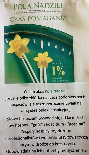 Dziękujemy wszystkim, którzy wsparli to dzieło. Cały pozyskany dochód, został przekazany na konto Hospicjum – na rzecz ludzi ciężko chorych, podopiecznych Sądeckiego Hospicjum.