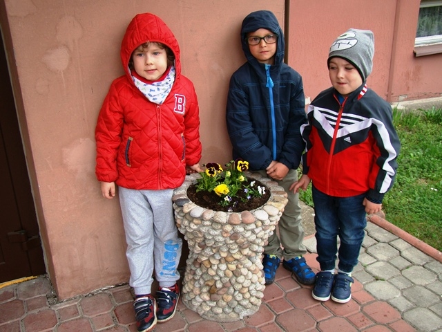 Dzieci z grupy 0-1 postanowiły pobawić się w ogrodników i zasadzić bratki w donicach przy szkole. Mali ogrodnicy codziennie będą podlewać i pielęgnować posadzone roślinki, aby zdobiły naszą szkołę jak najdłużej.