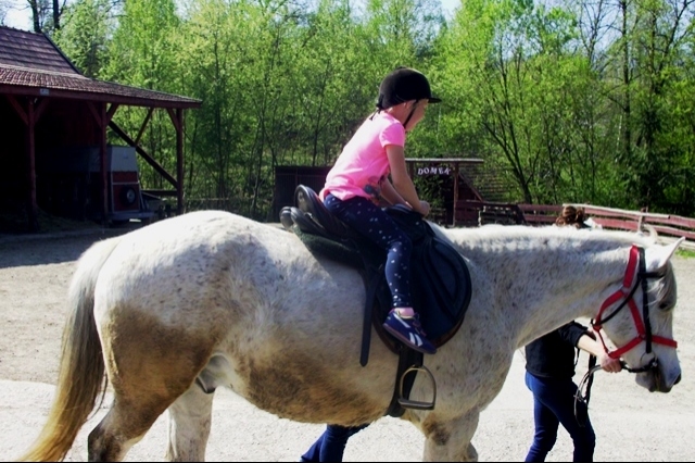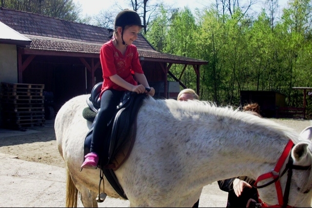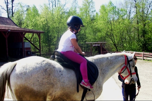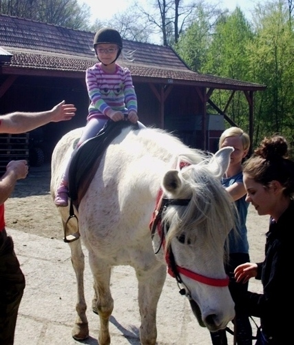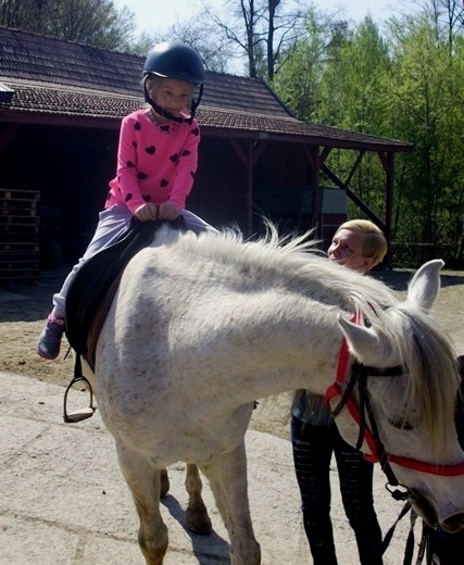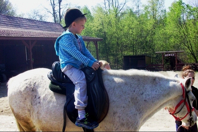 Dla wielu dzieci wycieczka do stadniny koni była pierwszą okazją do tego, aby bliżej poznać te zwierzęta, dowiedzieć się, w jaki sposób je pielęgnować i dbać o nie, utrzymując w dobrej kondycji i zdrowiu. Każde dziecko miało okazję przejechać się konno - było to fantastyczne przeżycie dla przedszkolaków, na które czekały z niecierpliwością. Pobyt w stadninie zakończył się wspólnym pieczeniem kiełbasek oraz zabawą na terenie gospodarstwa.