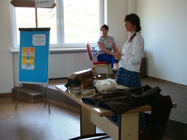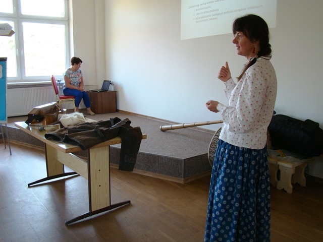 Podczas spotkania z uczniami pani Monika wyjaśniła uczniom czym jest folklor, zapoznała z ubiorem górali nadpopradzkich. Dzieci nauczyły się piosenki ”Świadyrydom” i na jej przykładzie poznały różnice pomiędzy gamą góralską a skalą c-dur. Wszyscy z zainteresowaniem oglądali pasterskie instrumenty ludowe: piszczałki, okaryny i trombitę.