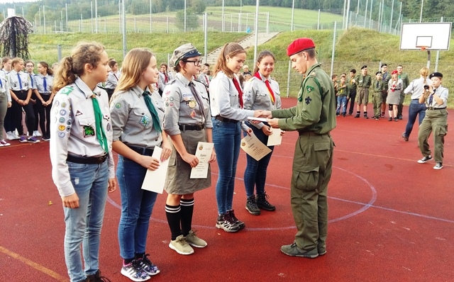 W czasie apelu podsumowującego grę wszystkim patrolom wręczono pamiątkowe dyplomy i wyłoniono zwycięzców w poszczególnych pionach. Z naszej drużyny I miejsce zajęły zuchy, a II miejsce harcerze. Każdy członek zwycięskich patroli otrzymał nagrodę rzeczową.