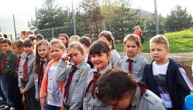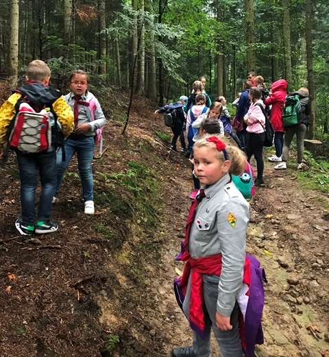 W sobotę, pomimo deszczowej pogody ruszyliśmy na długą wędrówkę, w czasie której wykonywaliśmy zadania gry terenowej. Oprócz tego zbieraliśmy prawdziwki i super się bawiliśmy. Przemoczeni i bardzo zmęczeni, ale z piosenką harcerską na ustach, szczęśliwie dotarliśmy do mety i jak to harcerze stwierdzili: „Nigdy z tak wielką radością nie witaliśmy widoku szkoły, jak w sobotę po zakończeniu gry”. Na szczególne uznanie zasługują nasze zuchy, które mimo bardzo trudnych warunków pogodowych i wymagającej trasy dzielnie wędrowały, pokonując taki sam dystans jak harcerze i harcerze starsi.