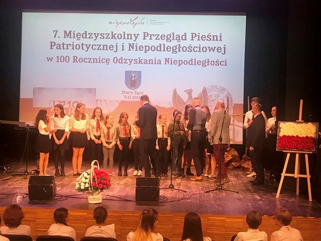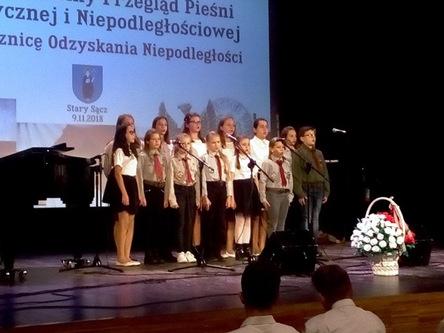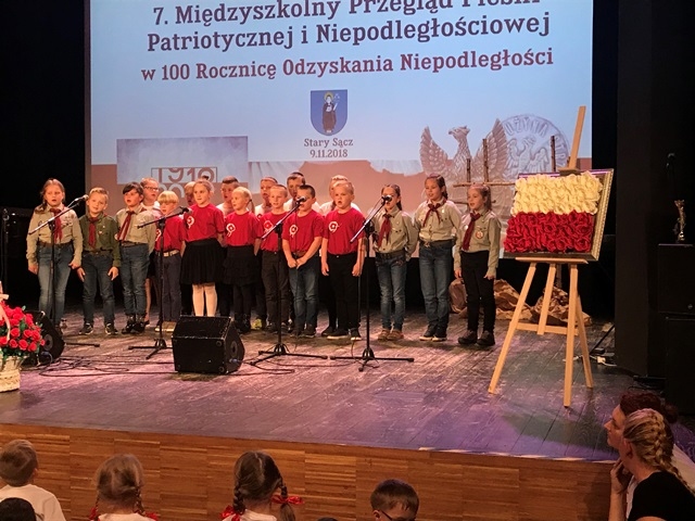 9 września 2018 r. nasza szkoła wzięła udział w Przeglądzie Pieśni Patriotycznej i Niepodległościowej w Starym Sączu. Klasy młodsze reprezentowała klasa II, która zaśpiewała pieśń „Wojenko, wojenko”. Grupę starszych klas, reprezentował zespół ,,Słoneczka”, który pięknie zaśpiewał ,,Rotę” oraz „Warszawiankę”, zdobywając zaszczytne II miejsce.