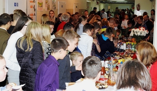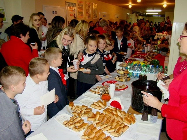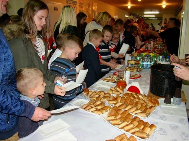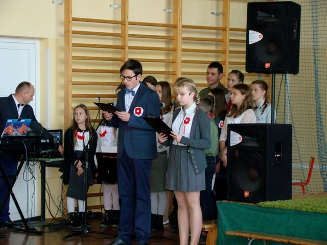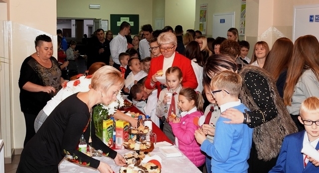 W dalszej części wszyscy wspólnie śpiewaliśmy pieśni patriotyczne, do których  akompaniował pan Krzysztof Smyda. Można też było poczęstować się słodkościami  przygotowanymi przez rodziców z każdej klasy. Z inicjatywy Rady Rodziców były też rozprowadzane  „cegiełki” na nowy sztandar szkoły.