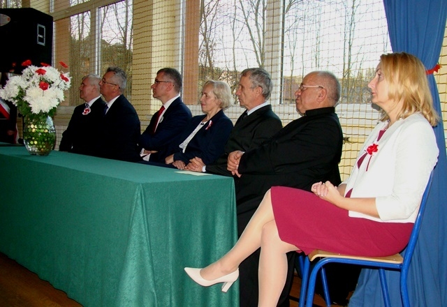 Uroczystość w naszej szkole swoją obecnością zaszczycili: burmistrz Starego Sącza, pan Jacek Lelek, wiceburmistrz Starego Sącza, pan Kazimierz Gizicki, wieloletnia dyrektor szkoły, pani Zofia Golonka, proboszcz parafii, ksiądz prałat Jan Wąchała, sołtys wsi, pan Kazimierz Ptaśnik, radny Rady Miejskiej w Starym Sączu, pan Jan Tokarczyk. Po spektaklu głos zabrał dyrektor szkoły, pan Aleksander Łukasik oraz  burmistrz Starego Sącza, pan Jacek Lelek.