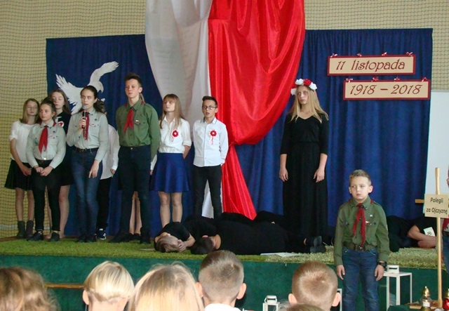 Od tego momentu minęło już sto lat, dlatego wszyscy Polacy uroczyście uczcili ten dzień. Również i nasza szkoła celebrowała  to wydarzenie.