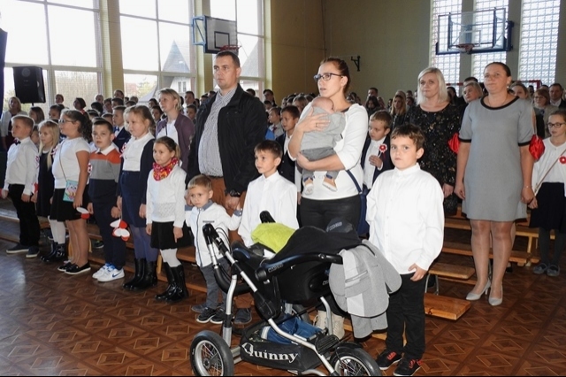 11 listopada o godzinie 14.00 w kościele p.w. Św. Jana Chrzciciela w Przysietnicy  rozpoczęła się Msza Święta w intencji Ojczyzny. Następnie udaliśmy się do szkoły, gdzie licznie przybyli rodzice, goście i uczniowie obejrzeli spektakl pod tytułem „Gdy wolności nadszedł czas…” przygotowany przez uczniów kl. 8a i harcerzy.  Przedstawiał on tragiczną historię narodu polskiego, który nie poddał się, nie uległ presji zaborców, walczył i zwyciężył. Zanim aktorzy pojawili się na scenie, miało miejsce uroczyste rozwinięcie kilkumetrowej flagi biało – czerwonej, która zawisła na jednej ze ścian sali gimnastycznej. Flagę ufundowali  rodzice, pani Agnieszka Olszowska i pan Jan Tokarczyk. Po tym wydarzeniu odśpiewaliśmy cztery zwrotki hymnu narodowego.
