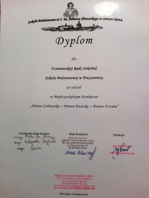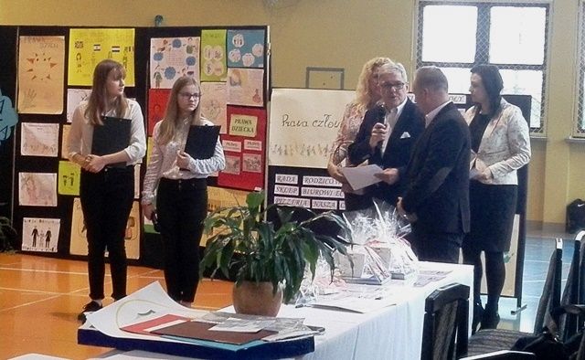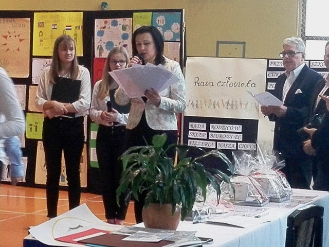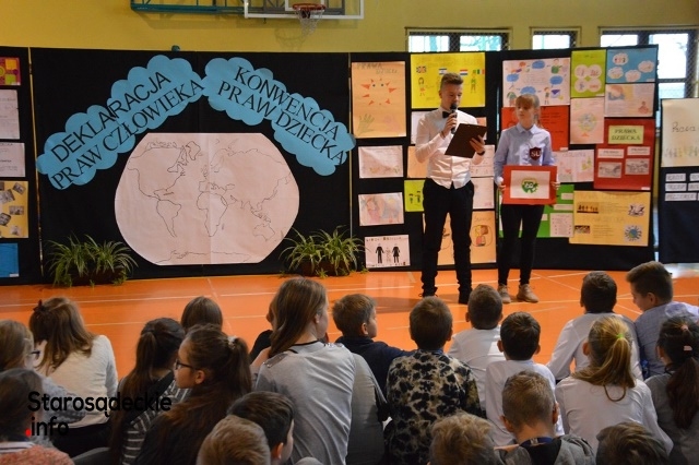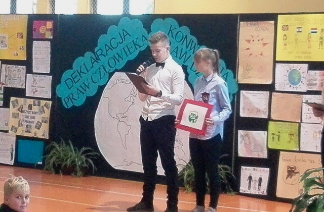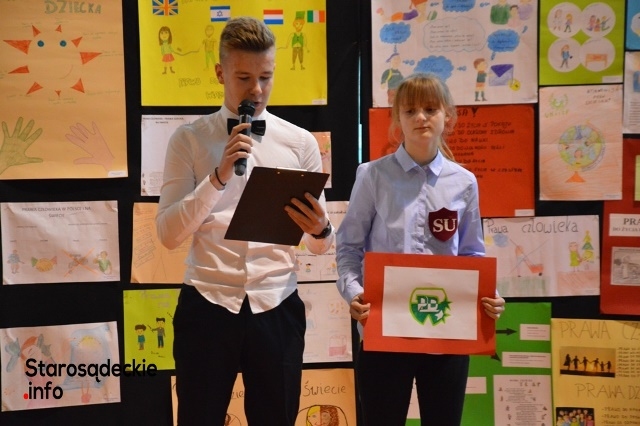 10 grudnia na całym świecie obchodzony jest Dzień Praw Człowieka. W tym roku z okazji 70 rocznicy podpisania Powszechnej Deklaracji Praw Człowieka Szkoła Podstawowa nr 2 w Starym Sączu zaprosiła Samorządy Uczniowskie ze szkół podstawowych z terenu Miasta i Gminy Stary Sącz do wspólnego świętowania. Został zorganizowany konkurs na logo - symbol organizacji broniącej praw uczniów i list otwarty na temat praw dziecka na świecie. Etap finałowy odbył się właśnie 10 grudnia. Naszą Szkołę reprezentowali przedstawiciele SU w składzie: Justyna Czerpak z kl. 8a i Filip Chorążewski z kl. 8b pod opieką p. Karoliny Botwiny. Wśród zaproszonych gości był poseł RP pan Kazimierz Sas, który złożył wszystkim z tej okazji życzenia, aby prawa dziecka, człowieka były zawsze i wszędzie respektowane.