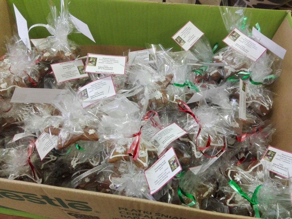 Szkolne Koło PCK od zawsze w swojej działalności skupia się na drugim człowieku. Grudzień to miesiąc, w którym bardziej włączamy się w akcje charytatywne, zbiórki żywności i pamiętamy o innych w kontekście Świąt Bożego Narodzenia. Członkowie Koła przy współpracy pani Renaty Garwol i pani Izabeli Radomskiej, którym serdecznie za pomoc dziękujemy, przygotowali ponad 80 sztuk pysznych, ślicznie udekorowanych pierników. Te drobne, słodkie upominki wraz z życzeniami w najbliższym czasie trafią do Seniorów, najstarszych mieszkańców Przysietnicy. Tradycją już się stało, że uczniowie naszej Szkoły odwiedzają mieszkańców, życząc im pomyślności i zdrowia na każdy dzień. W miarę możliwości również pomagają, aby ten radosny przedświąteczny czas udzielił się wszystkim i by nikt nie czuł się samotny.