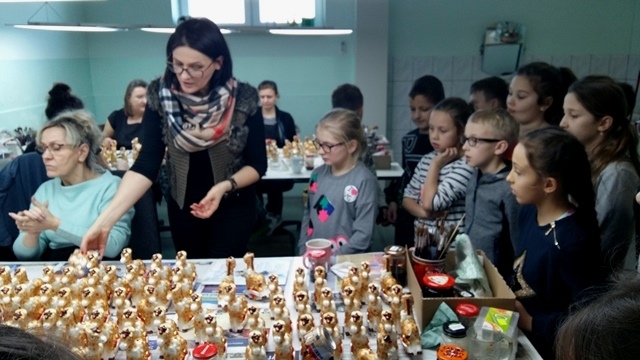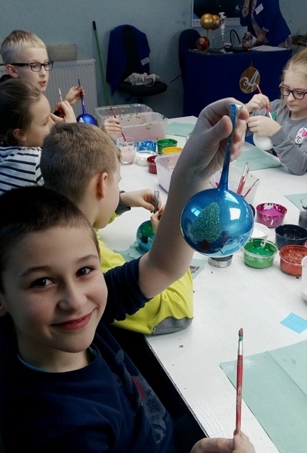 W godzinach porannych wszyscy z niecierpliwością wyruszyli w kilkugodzinną podróż do fabryki szklanych ozdób. Po przybyciu na miejsce uczniowie przeszli krótkie przeszkolenie z metod malowania i dekorowania bombek. W czasie zajęć warsztatowych wszyscy z zapałem tworzyli oryginalne wzory i kompozycje przy użyciu specjalnych farb i brokatów. Po zakończeniu pracy dzieci obejrzały film o etapach i technikach produkcji różnego typu ozdób choinkowych. Następnie wszyscy udali się na zwiedzanie fabryki i mogli na własne oczy zobaczyć pracę osób tworzących szklane dzieła sztuki na nasze choinki. Pełni wrażeń, zaopatrzeni we własnoręcznie ozdobione bombki udaliśmy się w drogę powrotną.