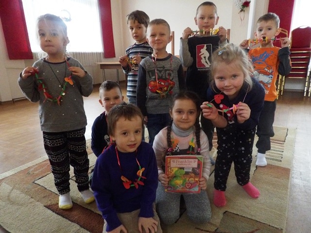 W środę 13 lutego na cotygodniowych zajęciach w bibliotece publicznej, obchodziliśmy Walentynki. Dzieci z oddziału przedszkolnego 0-1 i 0-2 wraz z wychowawcami i Panią Wiolettą Orłowską z Biblioteki Publicznej wykonywały z kolorowych serc naszyjniki dla kochanej osoby. Przedszkolaki zapoznały się również z tradycjami tego święta przypadającego 14 lutego oraz patronem zakochanych. Dzień ten ma przypominać nam o tym, co jest w życiu najważniejsze – o miłości i pozwala zastanowić się nad sobą.