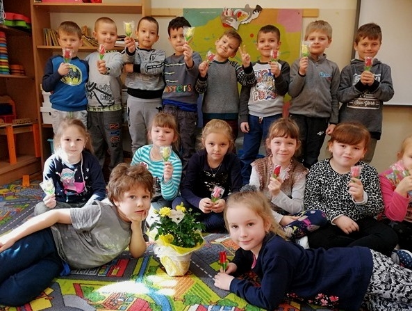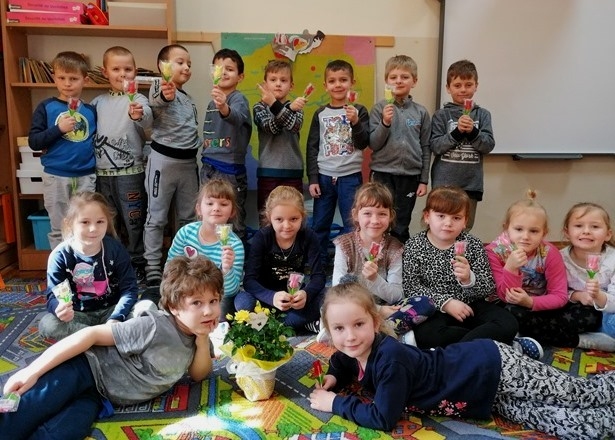 8 marca to wyjątkowy dzień w roku. Wtedy swoje święto obchodzą wszystkie kobiety, zarówno te duże, jak i te małe. W tym szczególnym dniu wszyscy chłopcy składali życzenia dziewczynkom. Nie obyło się bez słodkości i pięknych ręcznie wykonanych kwiatków. Z dziewczęcych buź, uśmiech nie schodził przez calutki dzień, a chłopcy zachowywali się jak prawdziwi gentelmani. Dziewczynki nie pozostały dłużne i wręczyły wszystkim kolegom motylkowe lizaki oraz życzenia.