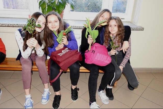 Męska część Rady Samorządu Uczniowskiego przygotowała krótki apel, aby złożyć wszystkim Paniom i Koleżankom najlepsze życzenia. Nie zabrakło ciepłych słów i pięknych, kolorowych kwiatów.