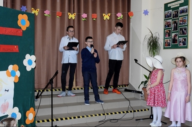 Uczeń kl. 5 b: Artur Dorula, członek RSU, zaśpiewał fenomenalnie utwór Marka Grechuty pt. „Będziesz moją panią”, a uczennice kl. 4a: Ilona Stawiarska i Zuzanna Porębska „Być kobietą, być kobietą” Alicji Majewskiej. Na każdym kroku w tym dniu było czuć wiosnę, radość i życzliwość. Wszystkie uczennice naszej szkoły dostały słodki upominek od Samorządu. Dużym zainteresowaniem cieszyła się także gazetka ścienna SU na której znalazły się informacje i ciekawostki związane z obchodami Dnia Kobiet w Polsce i na Świecie.
