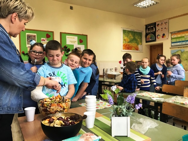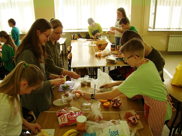 · przygotowywali i degustowali sałatki warzywne i owocowe oraz zdrowe kanapki i soki owocowo-warzywne,