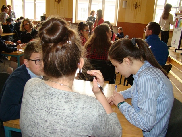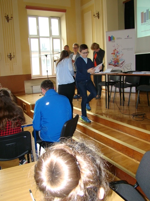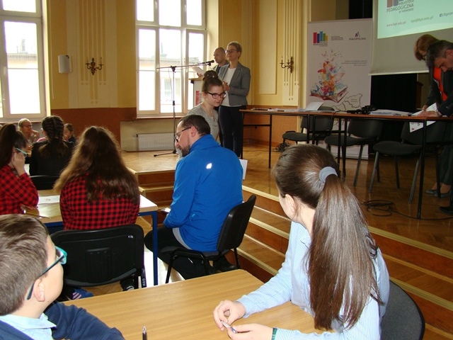 Konkurs miał miejsce w Bibliotece Pedagogicznej w Tarnowie. Konkurencja była ogromna, gdyż  na tym szczeblu rywalizowały ze sobą zwycięzcy z wszystkich powiatów województwa małopolskiego. Trzyosobowe grupy uczniów rozwiązywały naszpikowany detalami test dotyczący książki „Łukasz i kostur czarownicy” Piotra Patykiewicza.