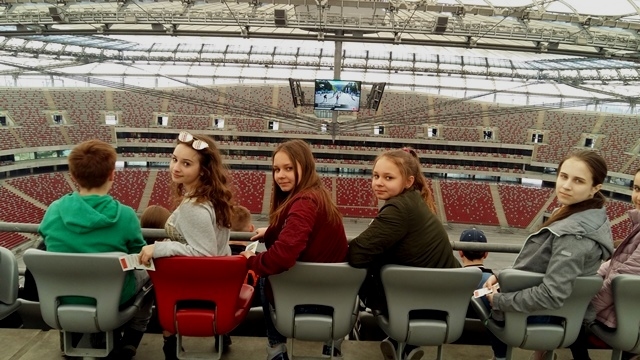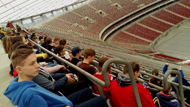 Pełni wrażeń po kilkugodzinnej wizycie w Centrum udaliśmy się na Stadion Narodowy w Warszawie, gdzie z punktu widokowego podziwialiśmy ten przepiękny obiekt sportowy. Dla wszystkich fanów piłki nożnej wejście na trybuny było wielkim przeżyciem i z pewnością zachęciło do ponownych wizyt w tym miejscu.