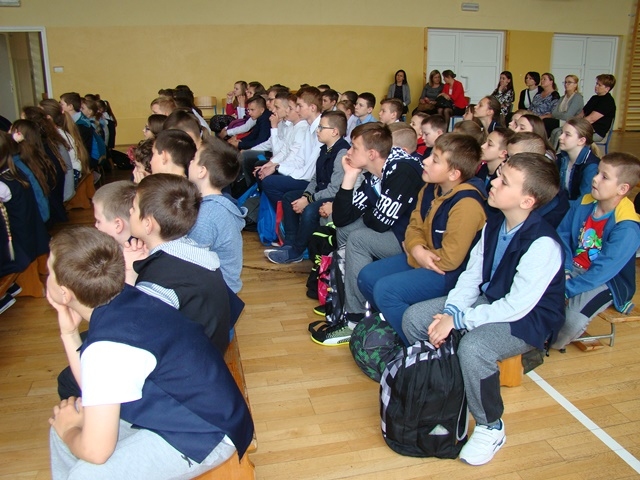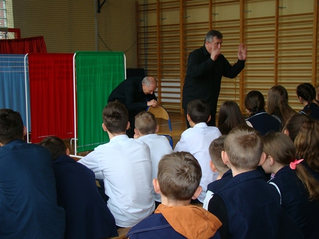 Dnia 09 maja 2019 r. uczniowie klas 4 -7  obejrzeli przedstawienie pod tytułem  „Związki frazeologiczne. Wyrażenia. Zwroty. Frazy” w  wykonaniu Wojciecha Habela i Jacka Lecznara  z  Agencji Artystycznej PRO ART - KRAK.