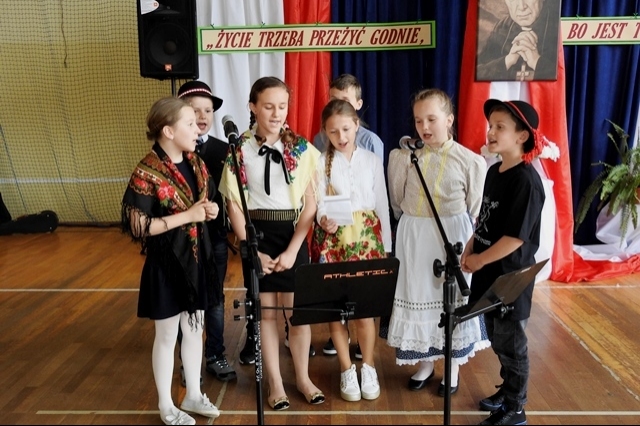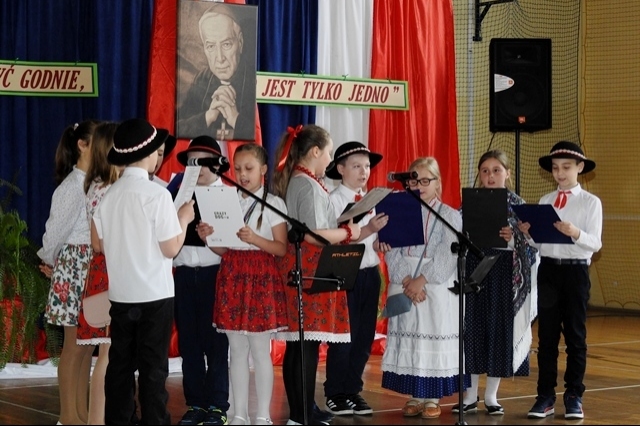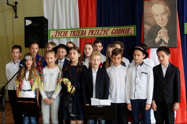 Towarzyszyła nam myśl Prymasa, że „Życie trzeba przeżyć godnie, bo jest tylko jedno” . Uczniowie przypomnieli najważniejsze fakty z życia ks. Stefana Wyszyńskiego oraz uniwersalne i ponadczasowe myśli kardynała, które mogą być wskazówkami w życiu każdego człowieka. Słowa zostały wzbogacone pieśniami maryjnymi i piosenkami w wykonaniu chóru.