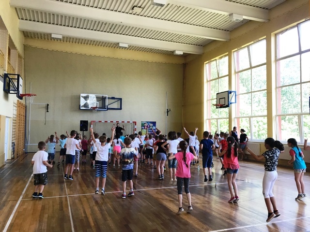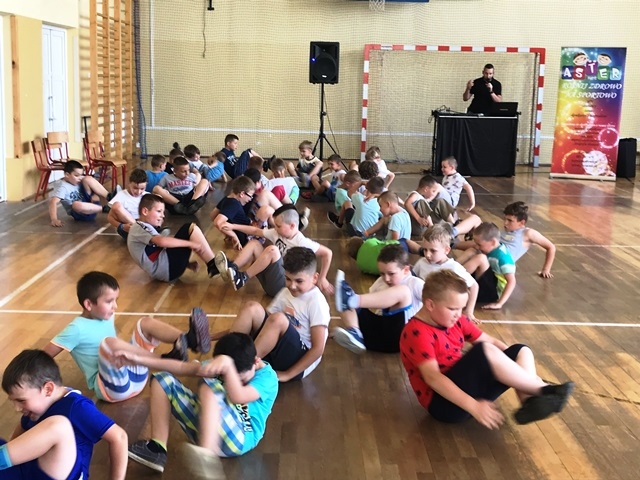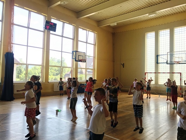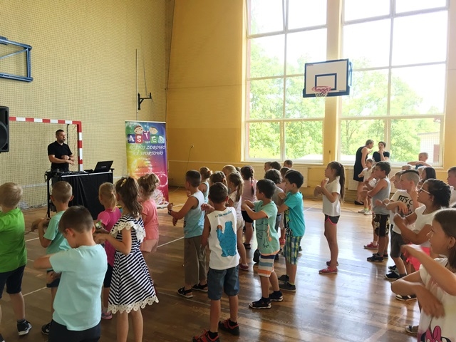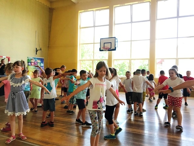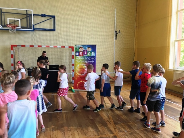12 czerwca 2019 roku uczniowie klas 0-III brali udział w zajęciach muzyczno – ruchowych prowadzonych przez animatora zabaw z firmy ASTER. Dzieci przy dźwiękach  muzyki miały możliwość zaprezentować swoje ruchowo- taneczne umiejętności. Zachęcane do działania wykonywały najdziwniejsze i najzabawniejsze układy taneczne. Były mobilizowane do aktywności, dokładnego słuchania i wykonywania określonych ruchów w rytm muzyki.
