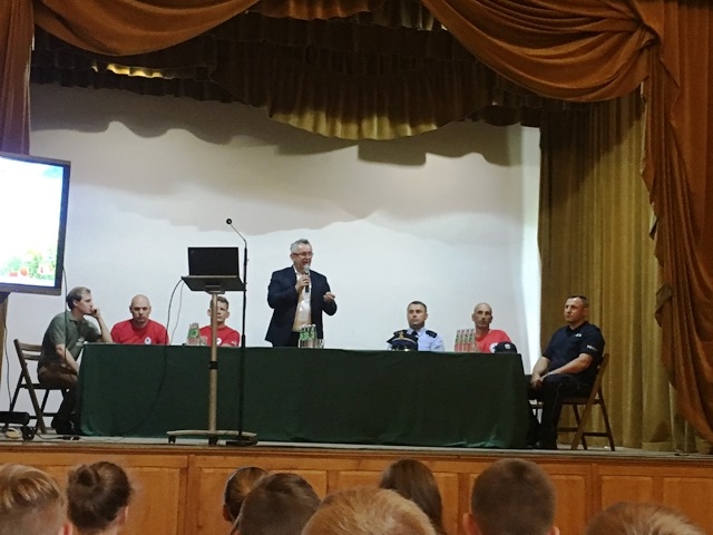 Trzecioklasistów ze szkół podstawowych z miasta i gminy Stary Sącz przywitał zastępca Burmistrza, pan Kazimierz Gizicki. Później oddał głos zaproszonym przedstawicielom Policji, Straży Pożarnej, Straży Ochrony Kolei, WOPR, GOPR i Nadleśnictwa. Zaproszeni goście w bardzo przystępny i zrozumiały sposób przedstawili, jakie zagrożenia czyhają na wakacjach, m.in. jak zachowywać się w pobliżu zbiorników wodnych, jak się ubrać w góry. Przypomnieli o skutkach braku odblasków po zmroku, o zasadach udzielania pierwszej pomocy i zasadach korzystania z numerów alarmowych oraz zasadach bezpieczeństwa w czasie kontaktów z nieznajomymi „oko w oko”. Poruszane tematy cieszyły się dużym zainteresowaniem wśród uczniów.