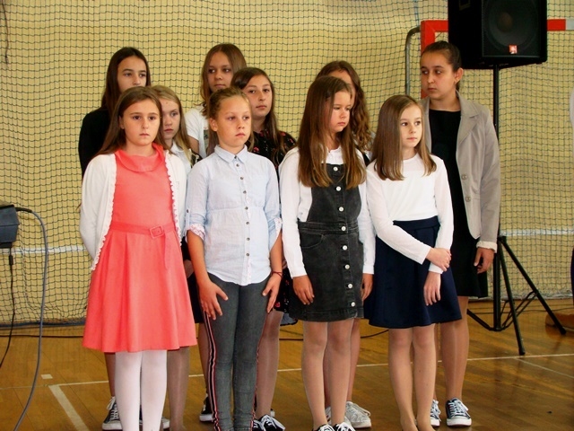 Apel przygotowali uczniowie klas ósmych pod kierunkiem p. Barbary Owsianka z oprawą muzyczną p. Krzysztofa Smydy.