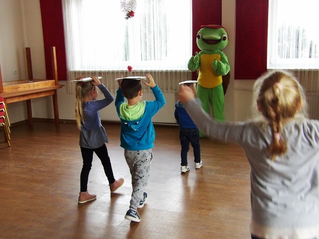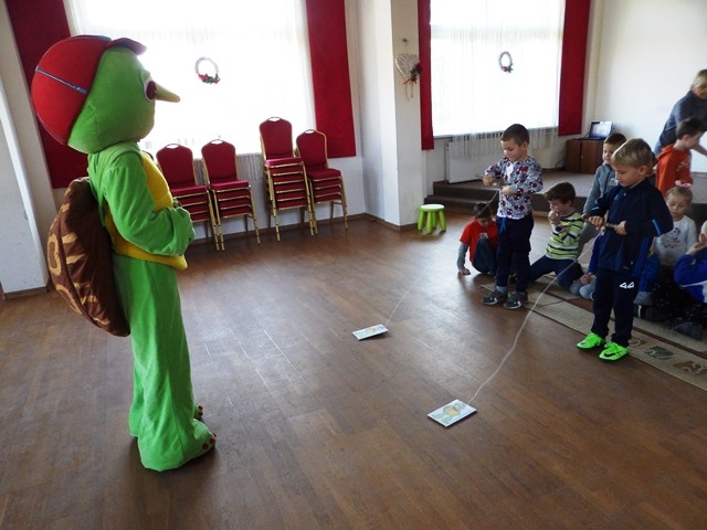 Nasz bohater czytał dzieciom bajki, zorganizował konkursy i  zabawy ruchowe. Spotkanie z Franklinem  sprawiło dzieciom  wiele radości i dostarczyło niecodziennych wrażeń.