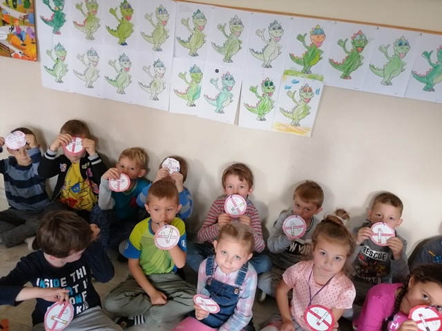 · „Jak unikać dymu papierosowego?"- rozmowa z dziećmi na temat umiejętności zachowania się, gdy znajdują się w zadymionych pomieszczeniach oraz umiejętności radzenia sobie w sytuacjach, w których inni palą papierosy.